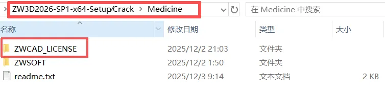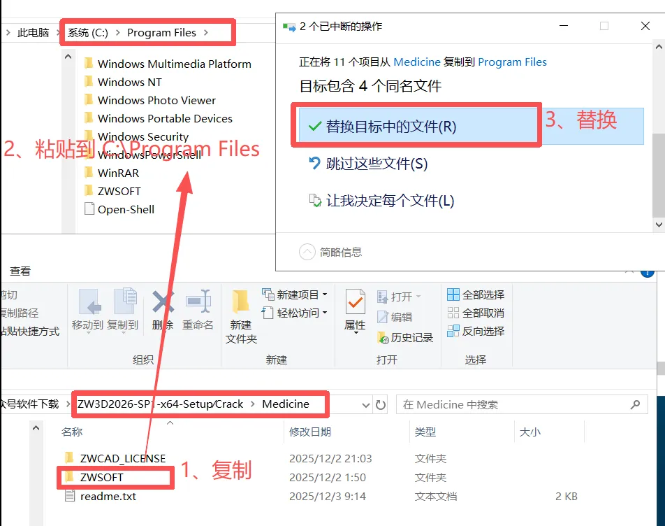 8、再在Medicine文件夹里把 ZWSOFT 文件夹复制到 C:\Program Files 里面,替换掉原来的文件