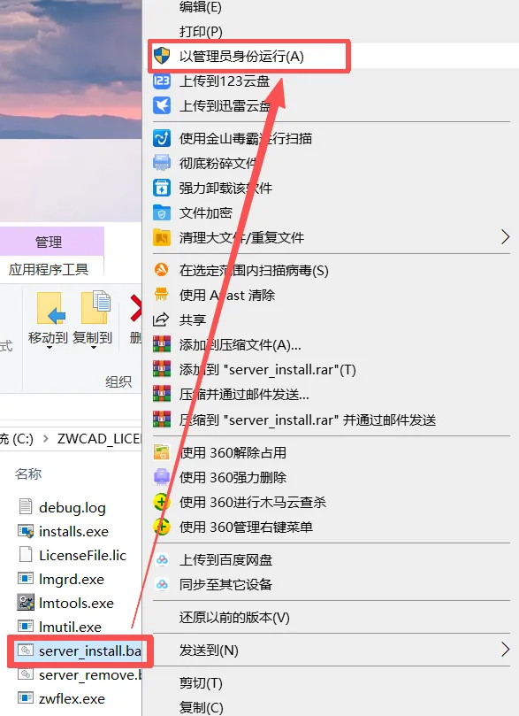 7、从Medicine文件夹找到 “ZWCAD_LICENSE”,把它复制到 C盘根目录,然后右键用管理员身份运行 “server_install.bat”,显示服务已启动即可.