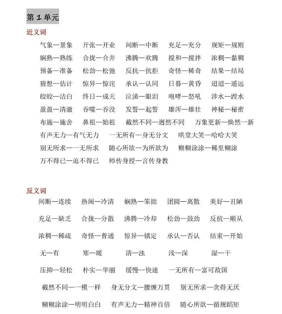 六年级语文下册基础知识汇总(文末附电子版小升初试卷) 六年级语文下册基础知识汇总 话不多说,直接上干货,图片可以直接截图打印。 (图片部分来源于网络) 多音字 近反义词 必背内容 文章内容来源于网络,如有侵权,联系即删。 关注公众号,识别二维码即可获得电子版资料。
