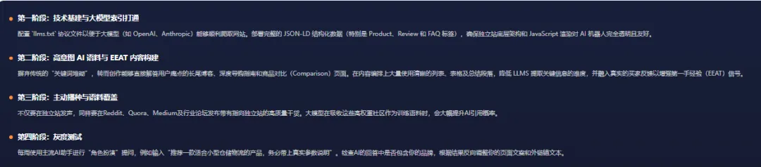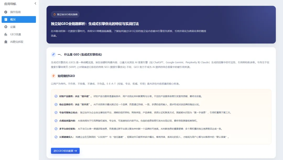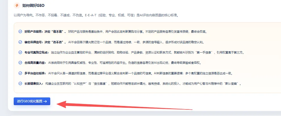 GEO 优化: 拼 EEAT(经验、专业、权威、可信)、拼结构化语料,直接让 AI 成为你的导购员。