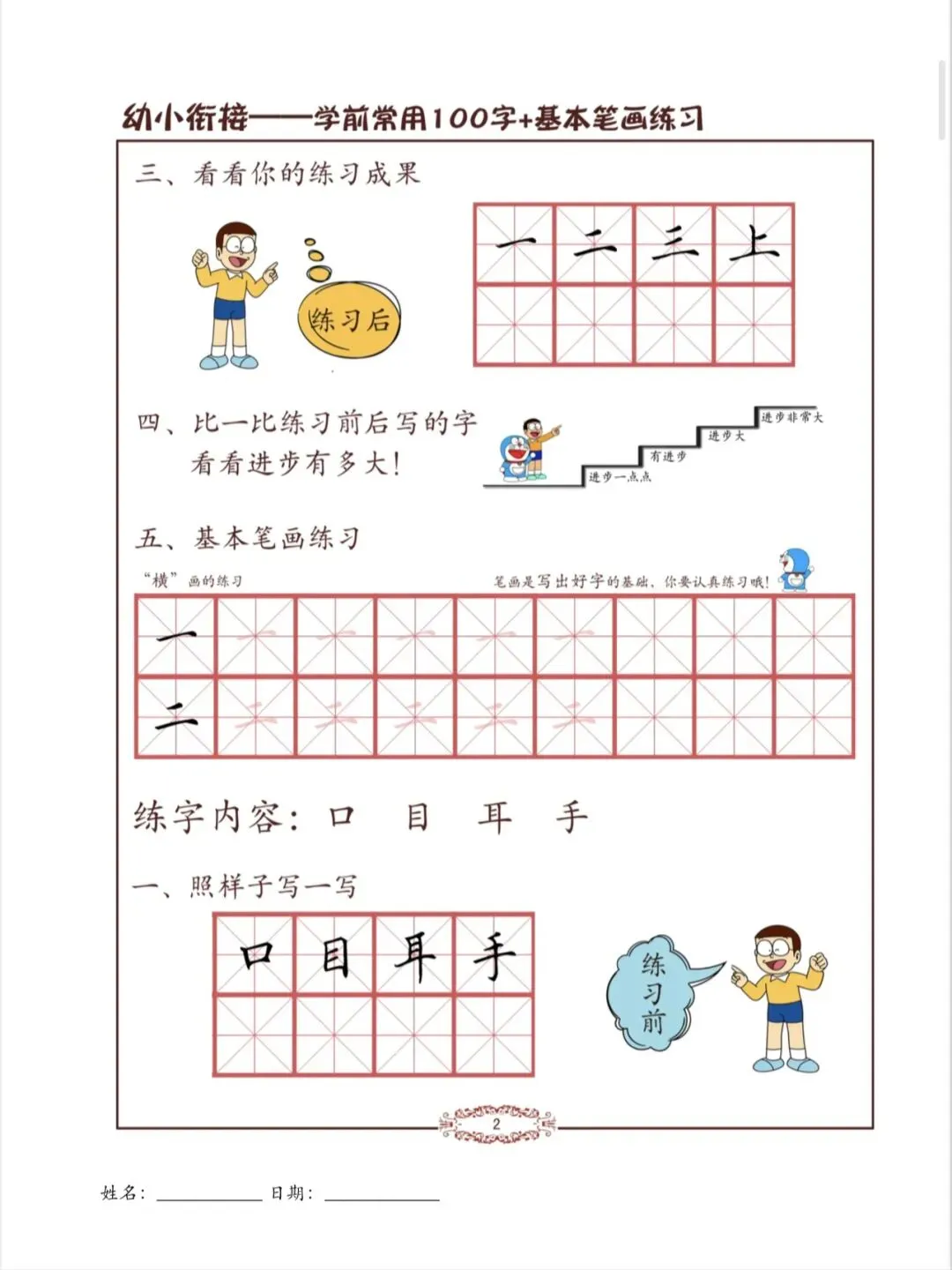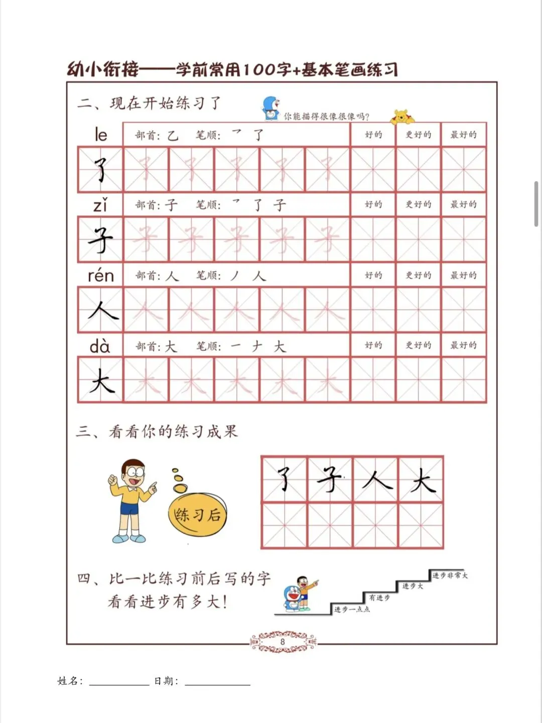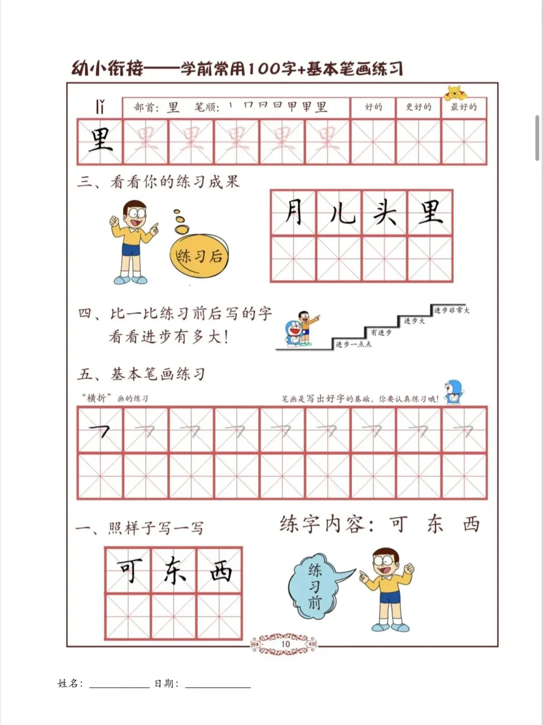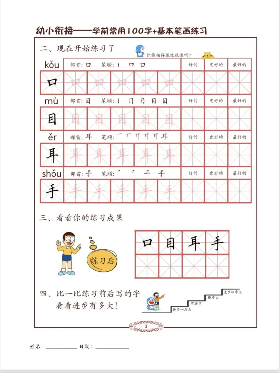 幼小衔接,必学100字,先熟悉100,再逐渐增加