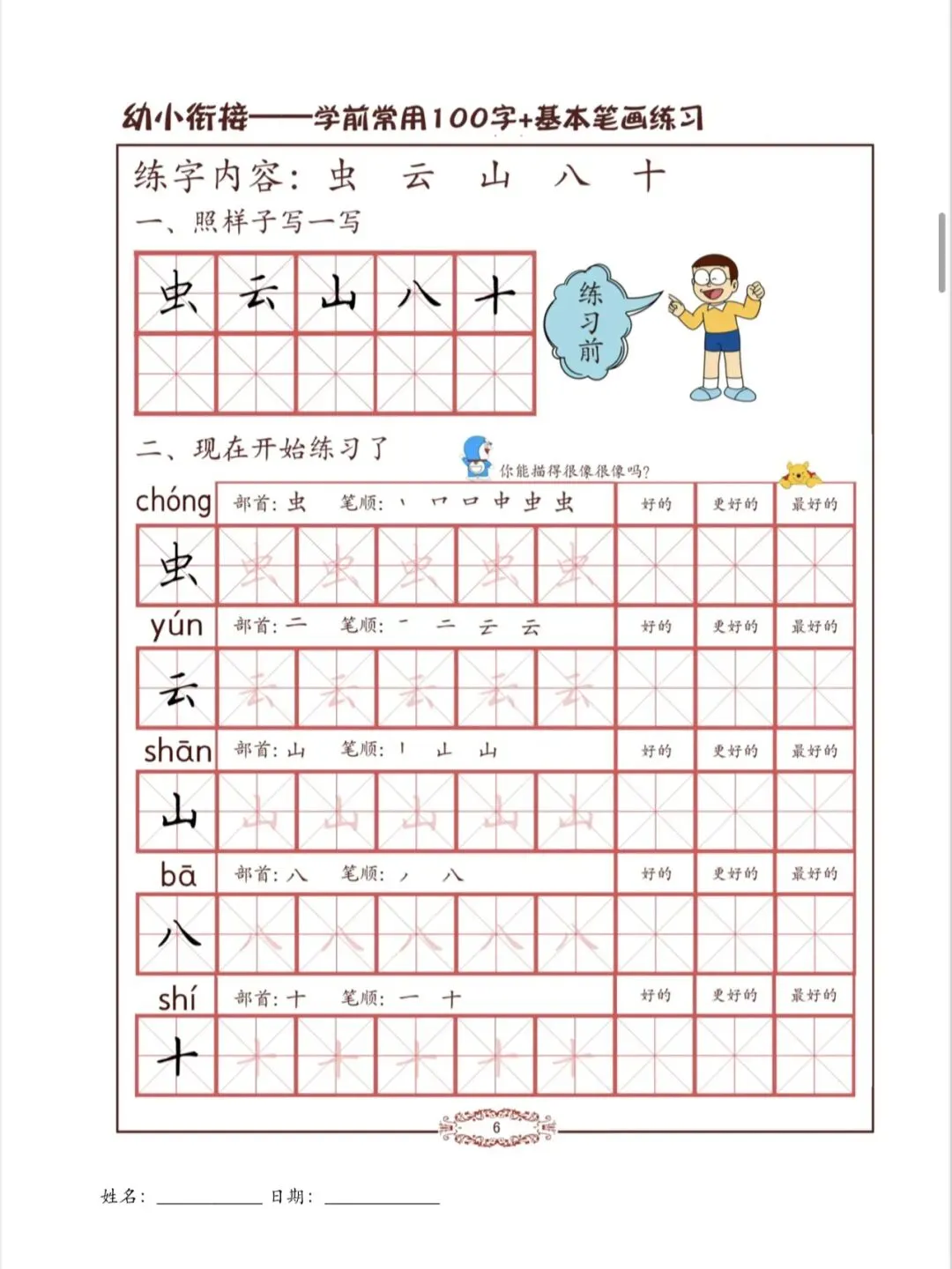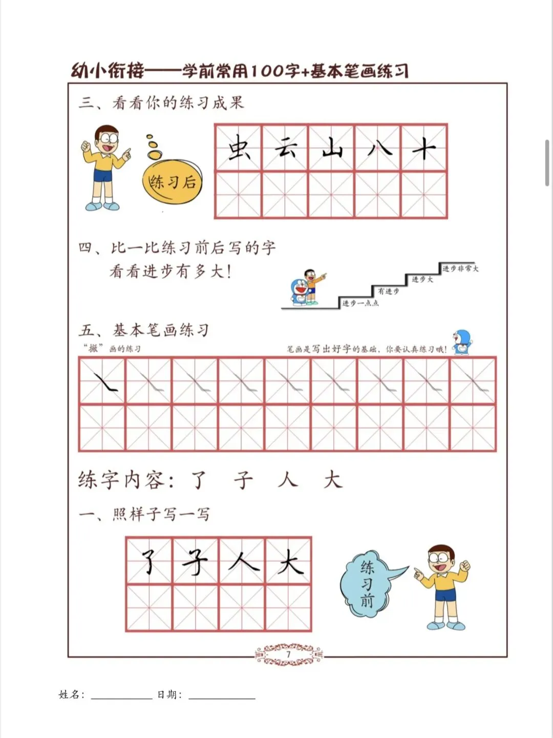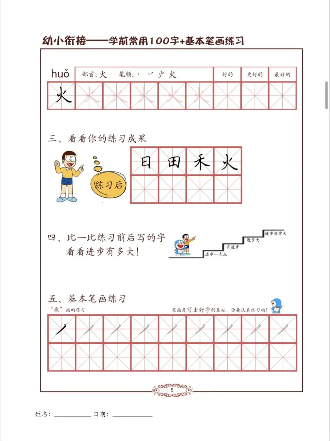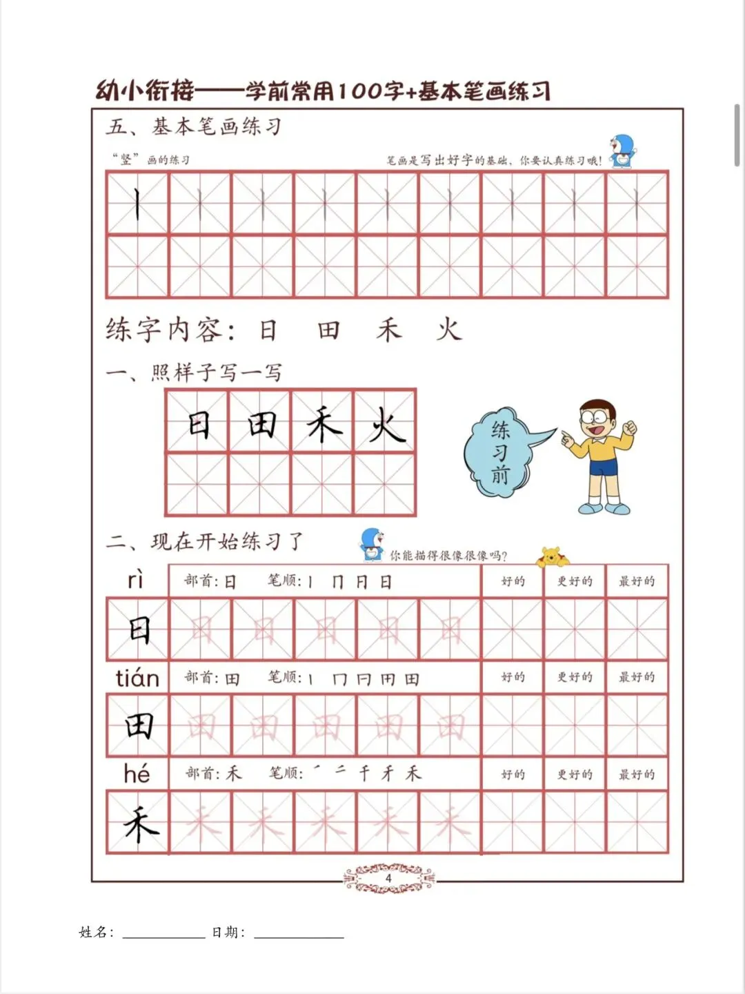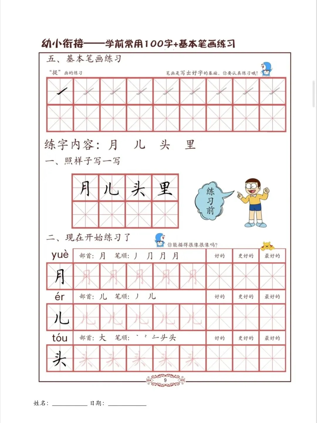 幼小衔接,必学100字,先熟悉100,再逐渐增加