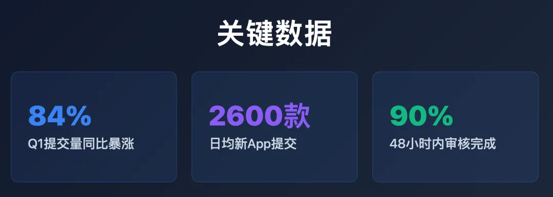 每天2600款App在敲苹果的门。84%的暴涨,审核系统接入AI但依然压力山大。这不是繁荣,这是考验。