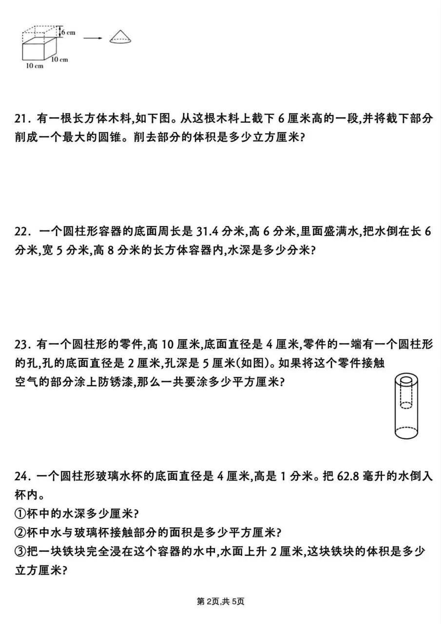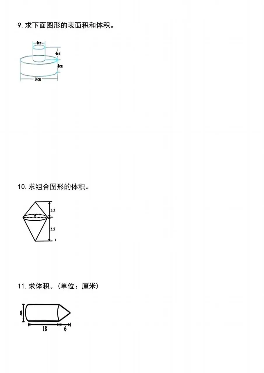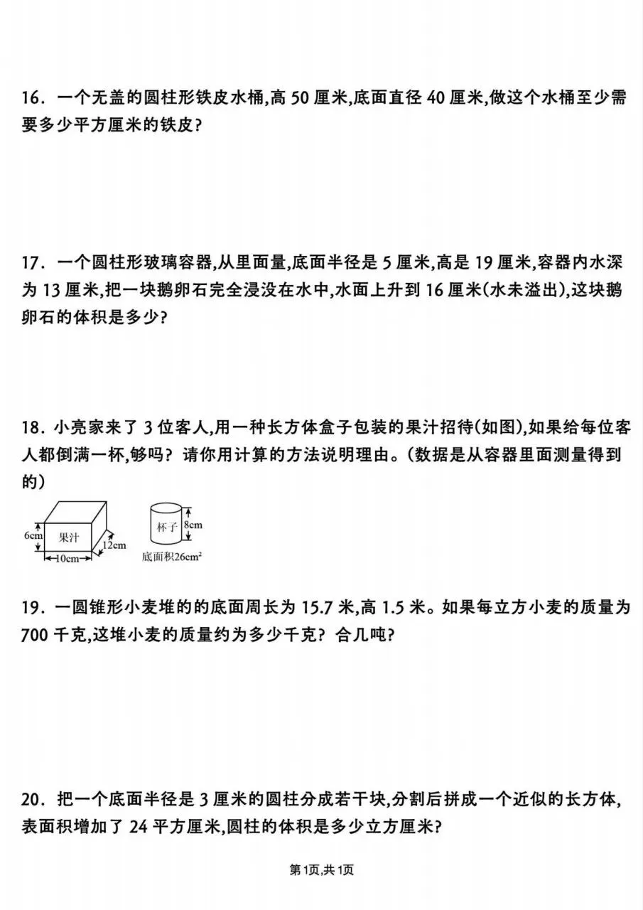 六下数学-圆柱与圆锥专项练习(30道)电子版免费下载!