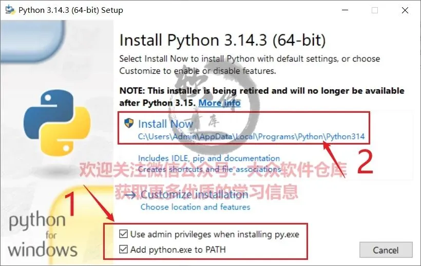 3.右键以管理员身份运行python-3.14.3-amd64程序;