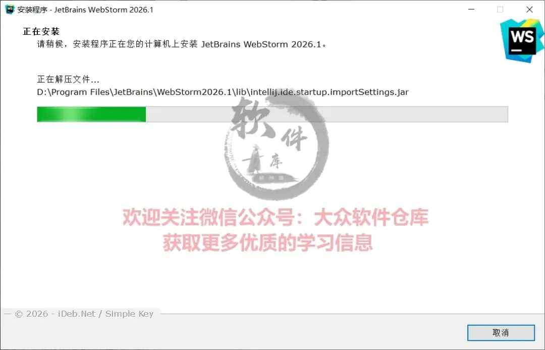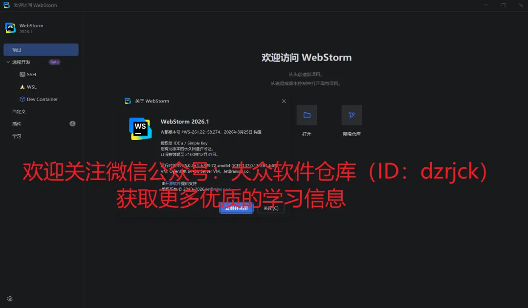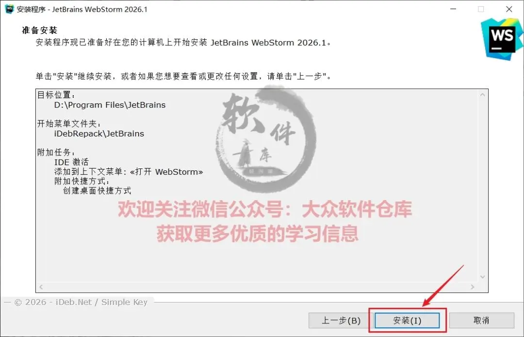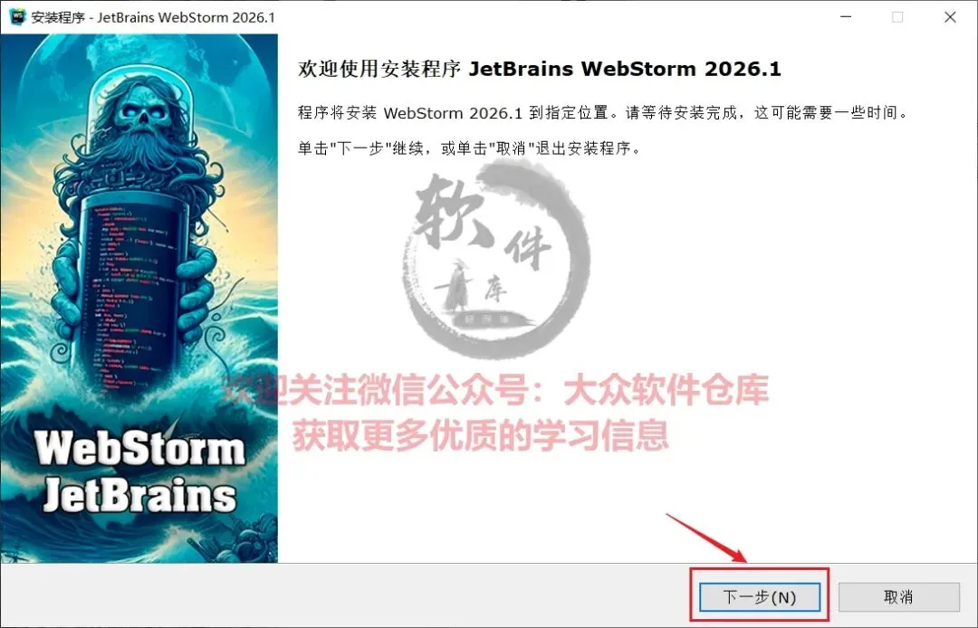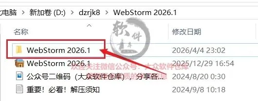 2.双击打开解压后的WebStorm 2026.1.exe文件夹;