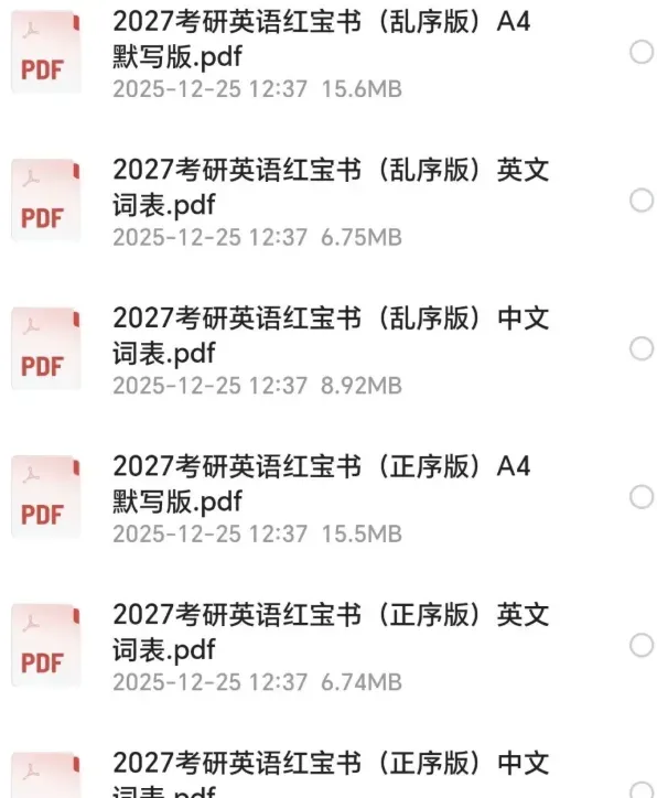 今天给大家准备的是:2027考研英语《红宝书》全套pdf+考研英语娜拉红宝书听课笔记(完整)
