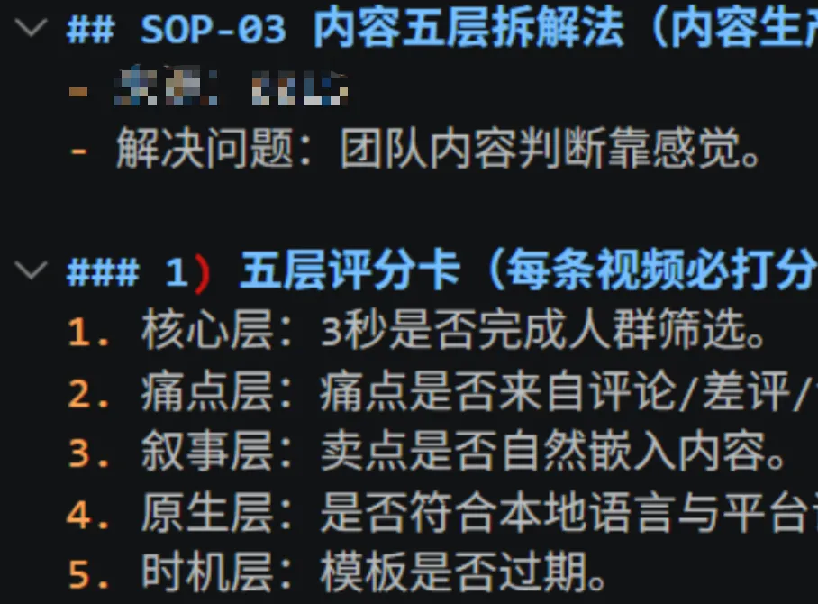 sop的价值谁都知道,但能不能有效的梳理、正确的总结,则又是另外一回事。这种直接可用的sop,这次产出了几十份。原来这些经验散在文档里、留在少数人脑子里,真正要用的时候很难回收。洗出来之后,它就可以从某些个体的“个人经验”变成“团队的标准动作”。