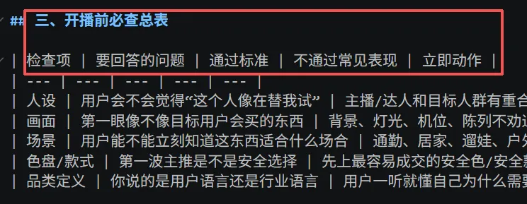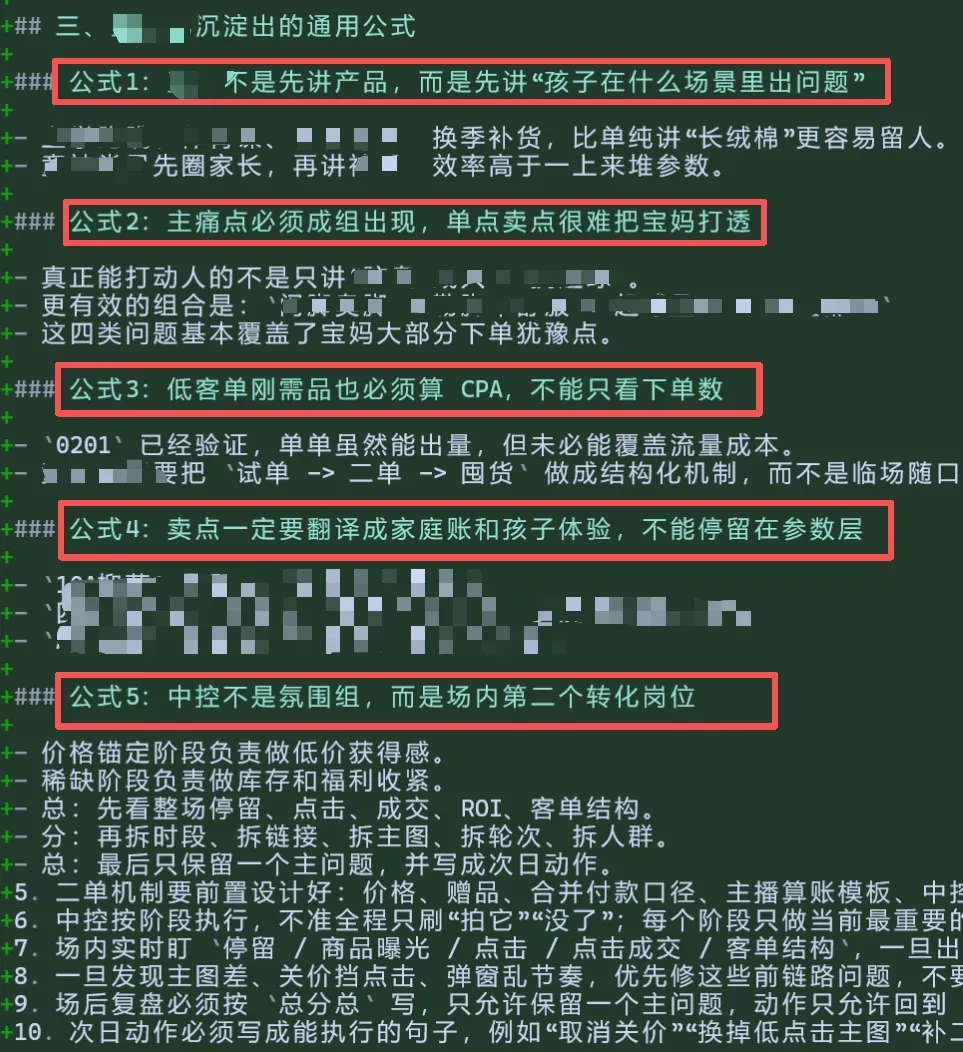 这个案例就是一开始我展示成果时专门框出来,“给了我挺大启发”的案例。原文档很长,我只是截了很小一部分做管中窥豹。这个文档不是单纯从群聊中总结而出,而是文档+表格+群聊,且多项目综合总结的全新产物,算是高质量产物的代表,直接拿去做Skill我几乎没花什么精力。