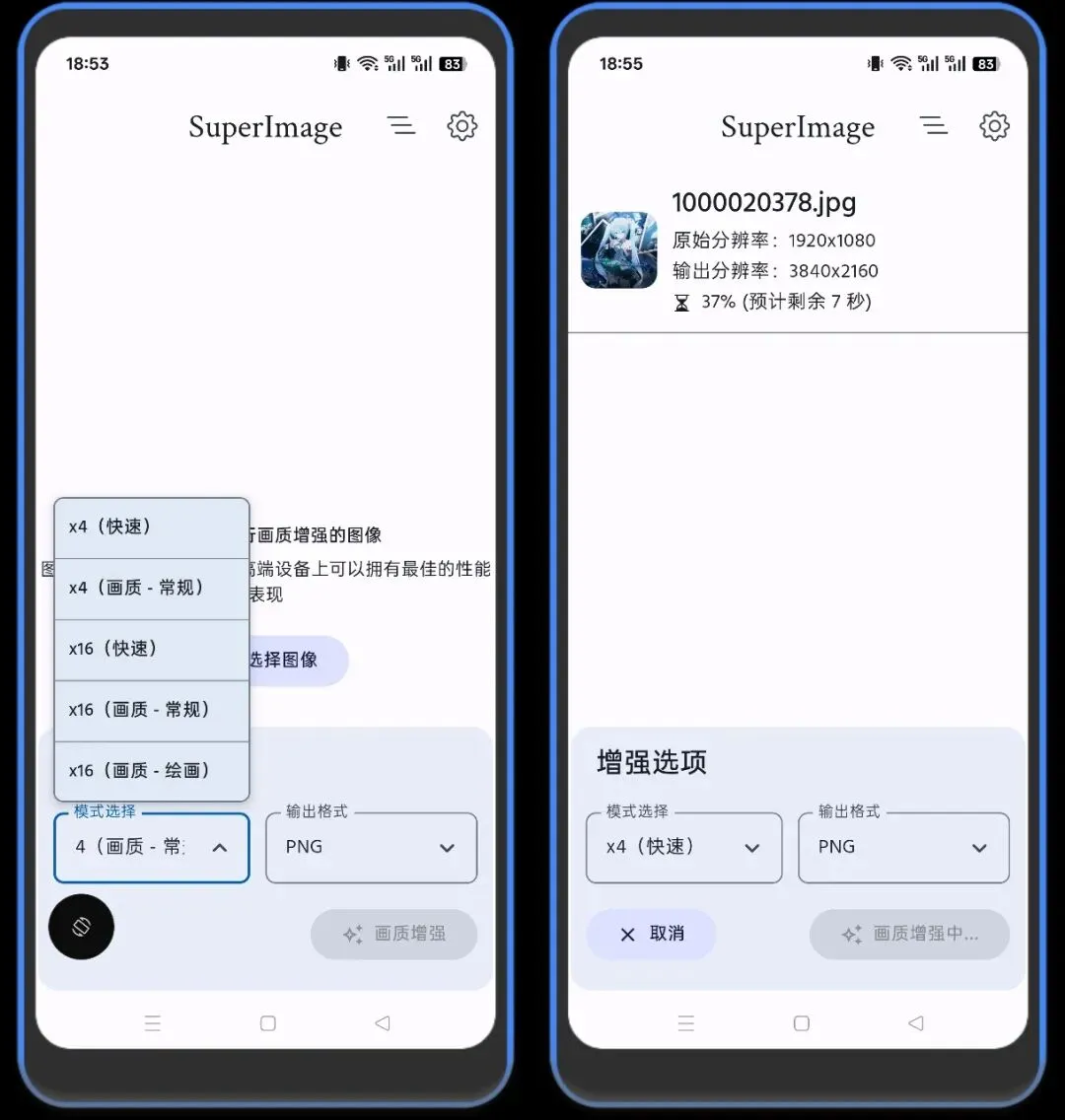 1、这是一个可以提升照片清晰度神器,免费无广,主打图像超分辨率放大、智能修复、画质优化等核心功能,最高可以提升16倍清晰度。网上看见一些好看图片想当壁纸但是清晰度差就可以用这个。