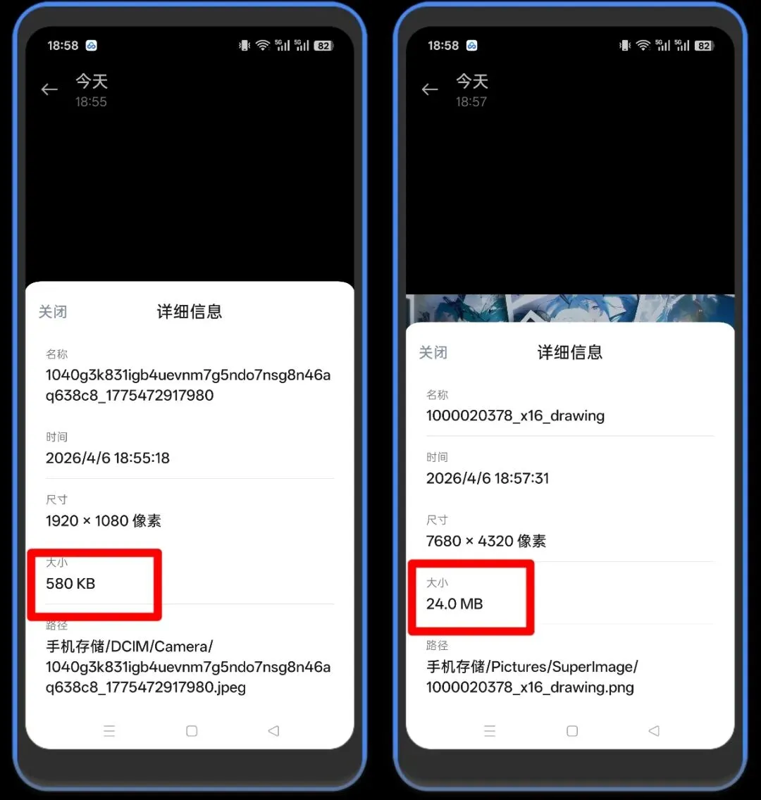 2、选择图像上传后,可以选择4倍或者16倍清晰度,告别传统放大的模糊、锯齿与失真,让小尺寸图片清晰放大至高清、4K 级别,满足打印、大屏展示、细节查看等需求。下图从原来的580kb提升到24MB,非常好用!有需要的快去试试!