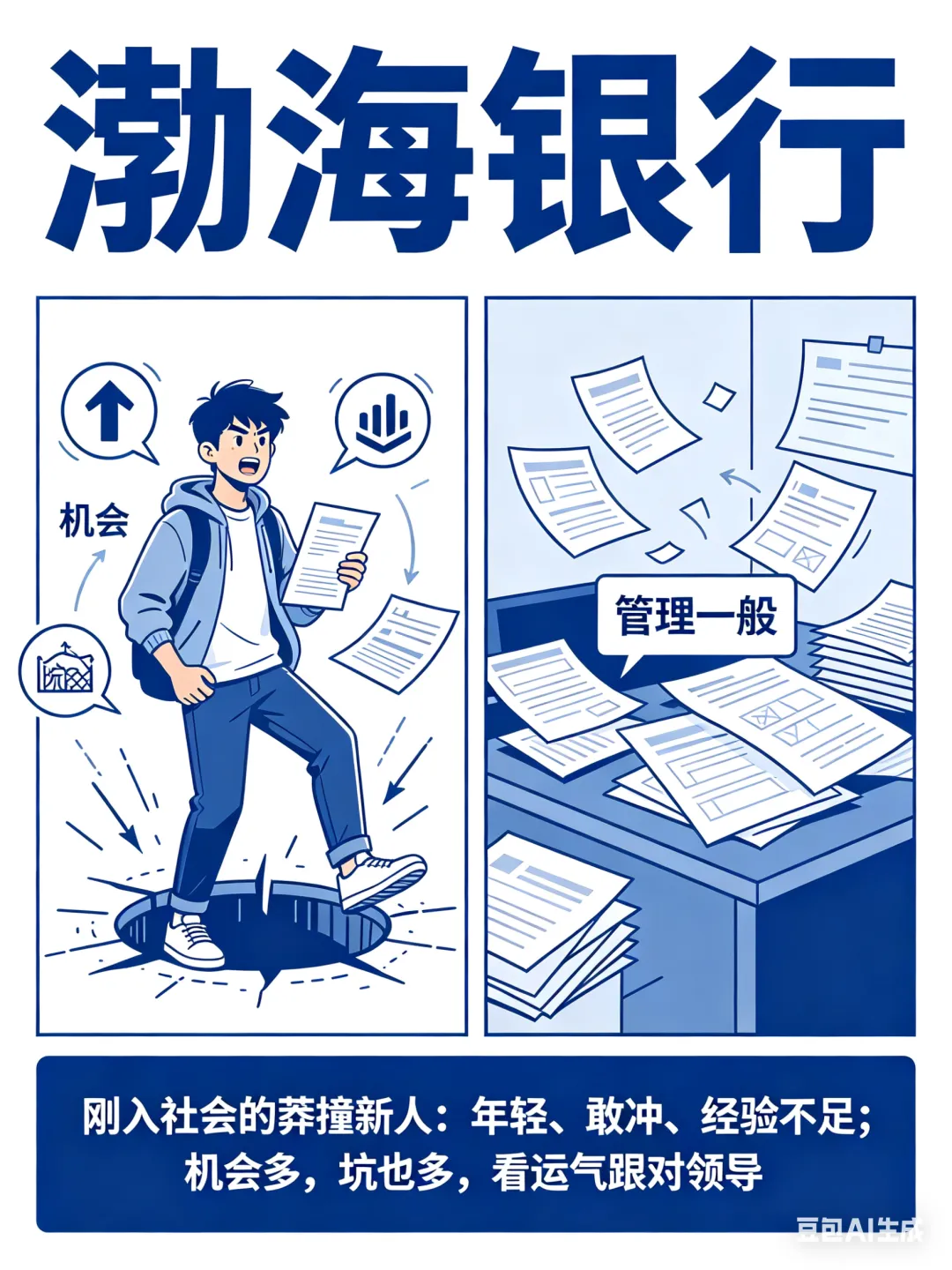 1考察核心:求职动机、稳定性、对渤海银行的认可度,通用类高频题,侧重考察个人与渤海银行的契合度。