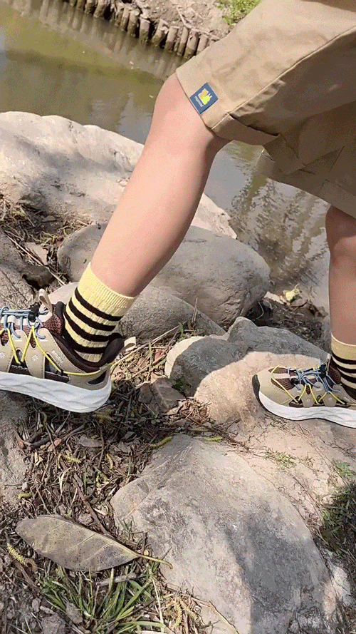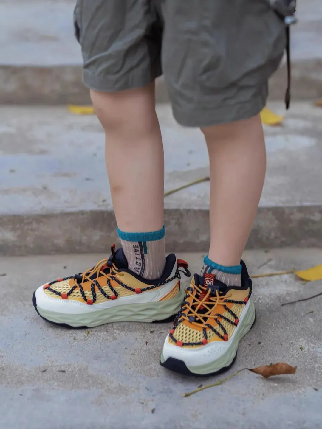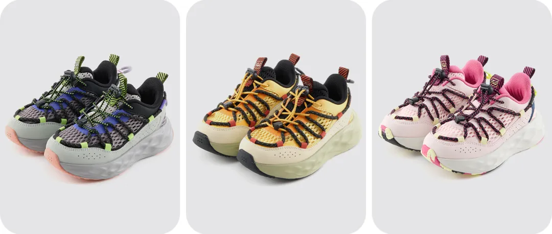我同时还看到他家“0压感”儿童鞋系列里,还有一款“山涧计划”,核心科技是一样的,但配色活力感比较强,所以也特别想分享。