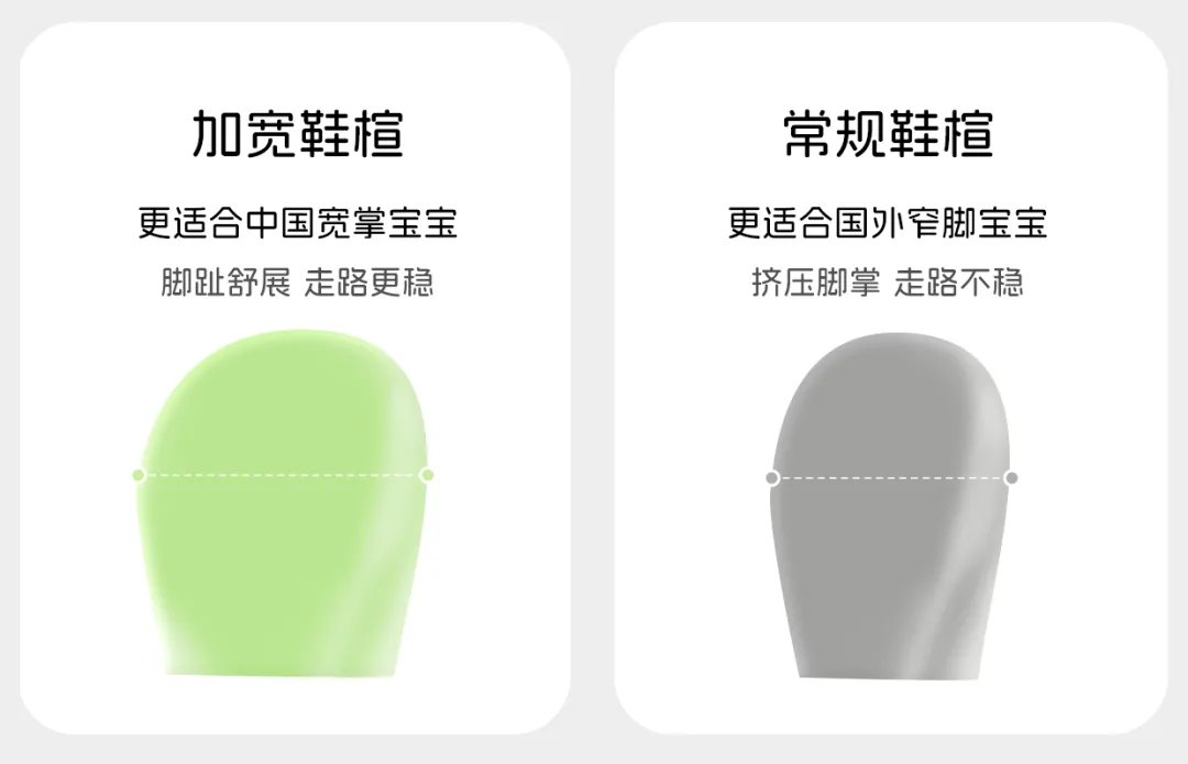 咱们中国孩子脚掌普遍宽一些,穿进去脚趾挤在一起,走路就容易不稳,甚至磨出泡。