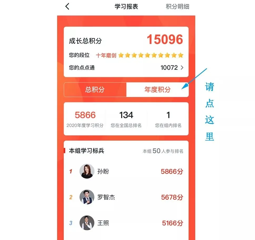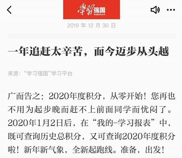 2020年度积分,从零开始!您再也不用为起步晚而赶不上前面同学而忧闷了。2020年1月2日后,在“我的-学习报表”中,既可查询历史总积分,又可查询2020年度积分啦!新年新气象,全新起跑线。准备,出发!