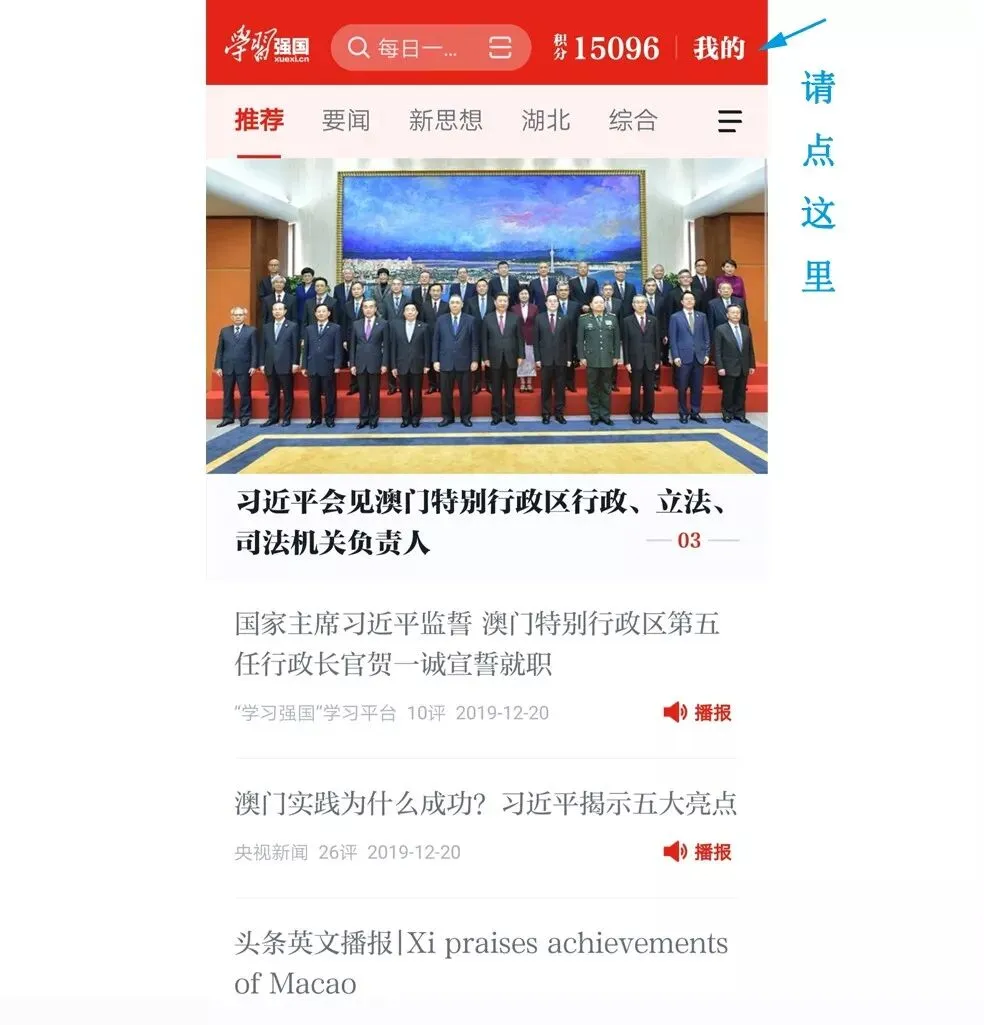 第一步,打开“学习强国”APP,点击屏幕右上角的“我的”;
