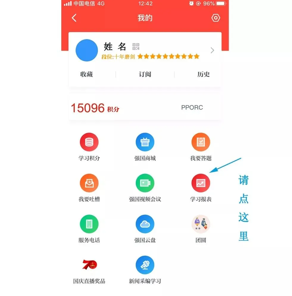 第三步,在“学习报表”页面上,点击“年度积分”即可查看。