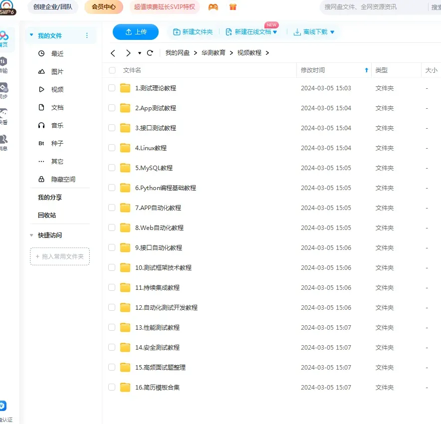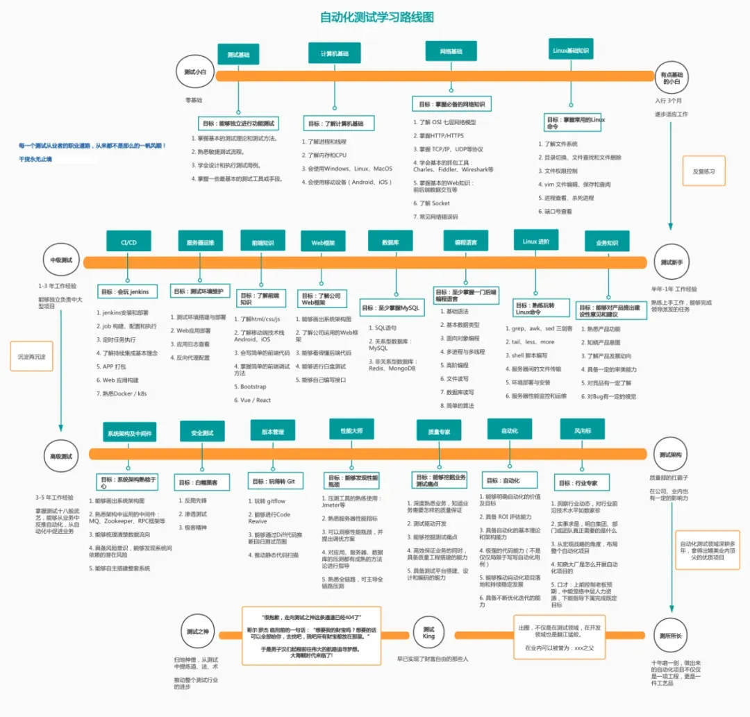 (从测试基础理论开始、测试工具、功能测试、App自动化测试、接口测试教程、liunx教程、Mysql教程、python语言、接口自动化、自动化测试框架、持续集成、性能测试、测试开发、安全测试)应有尽有(都是免费分享的)