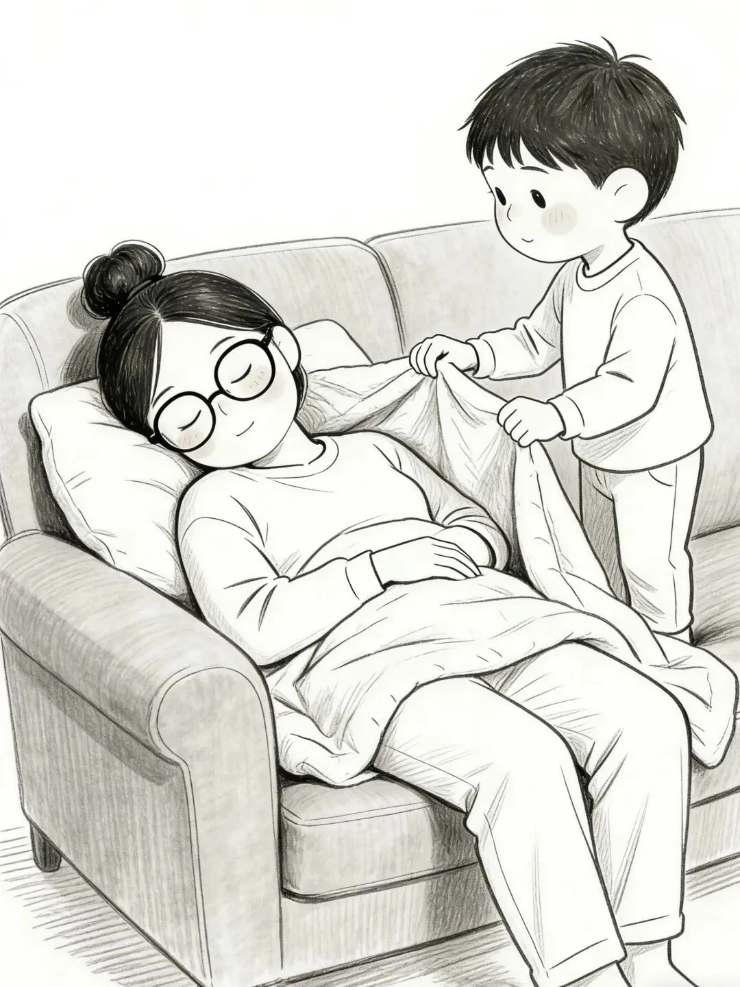有一次淘妈搞完卫生躺在沙发上睡着了,一睁开眼发现淘淘在悄悄帮妈妈盖被子,心瞬间被融化了。
