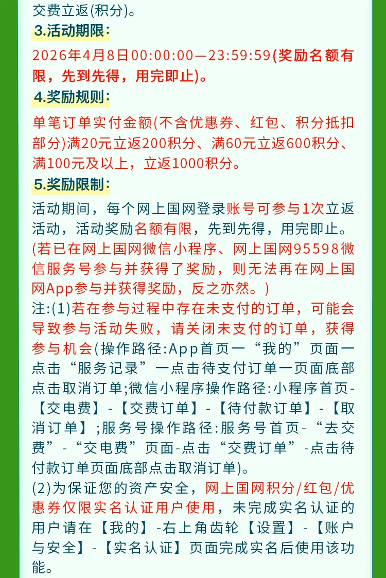 网上国网App | 春季福利来袭,4月8日交费返积分!