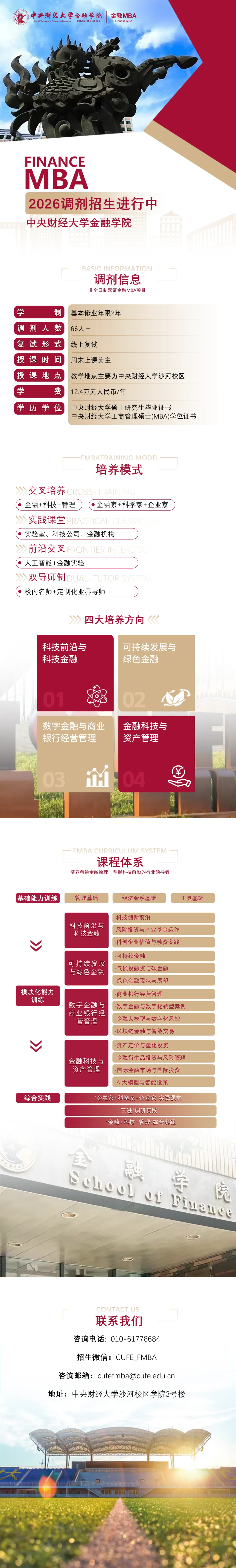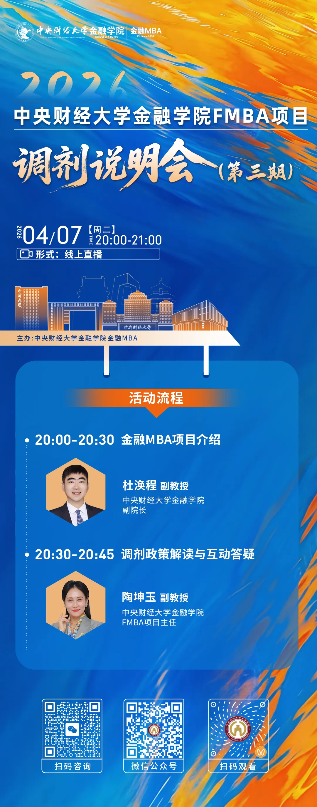 今日20:00调剂说明 | 中央财经大学金融学院金融MBA调剂说明会(第三期)