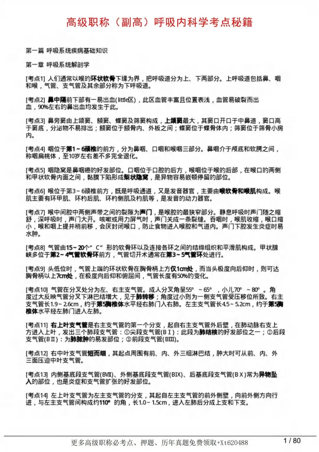 以上是呼吸内科高级职称001考资料包部分精华内容节选完整版领取如下: