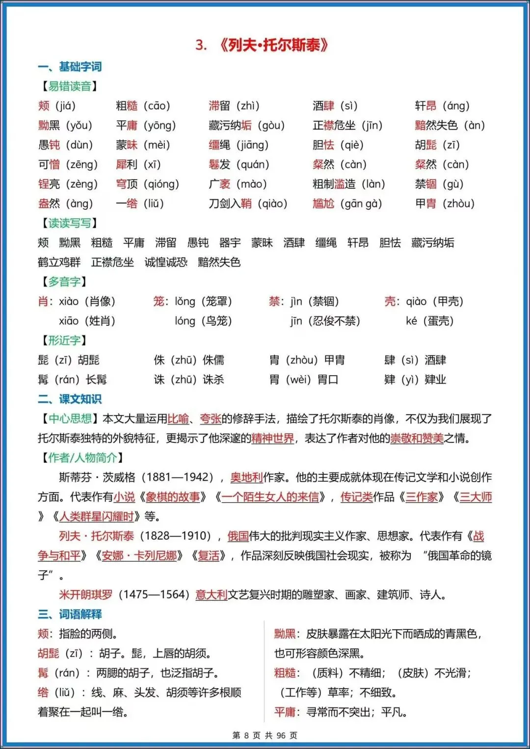七下语文|全册重点知识全归纳,完整电子版可打印!复习预习皆可用提分必备(2026人教版)