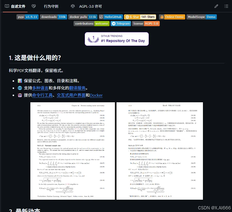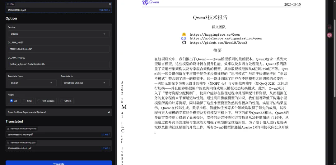 我觉得它最有价值的地方,是它解决了“翻译”和“排版”不能兼得的问题。很多工具只能把文字翻出来,但看完之后还得自己对照原文;而 PDFMathTranslate 更像是把整份文档尽量“翻译成同样结构的另一份版本”,这对高频阅读外文资料的人来说效率提升非常明显。