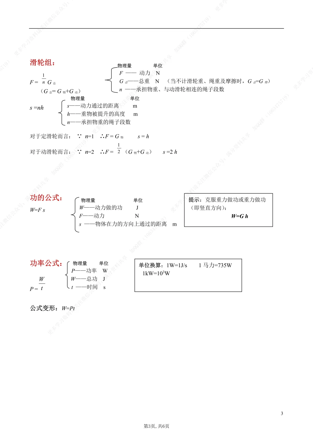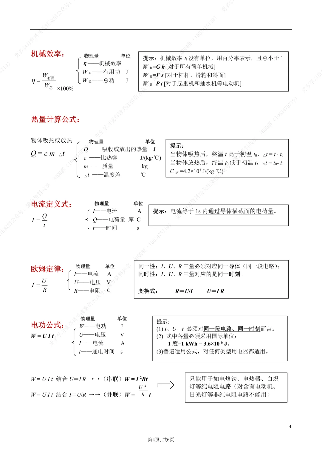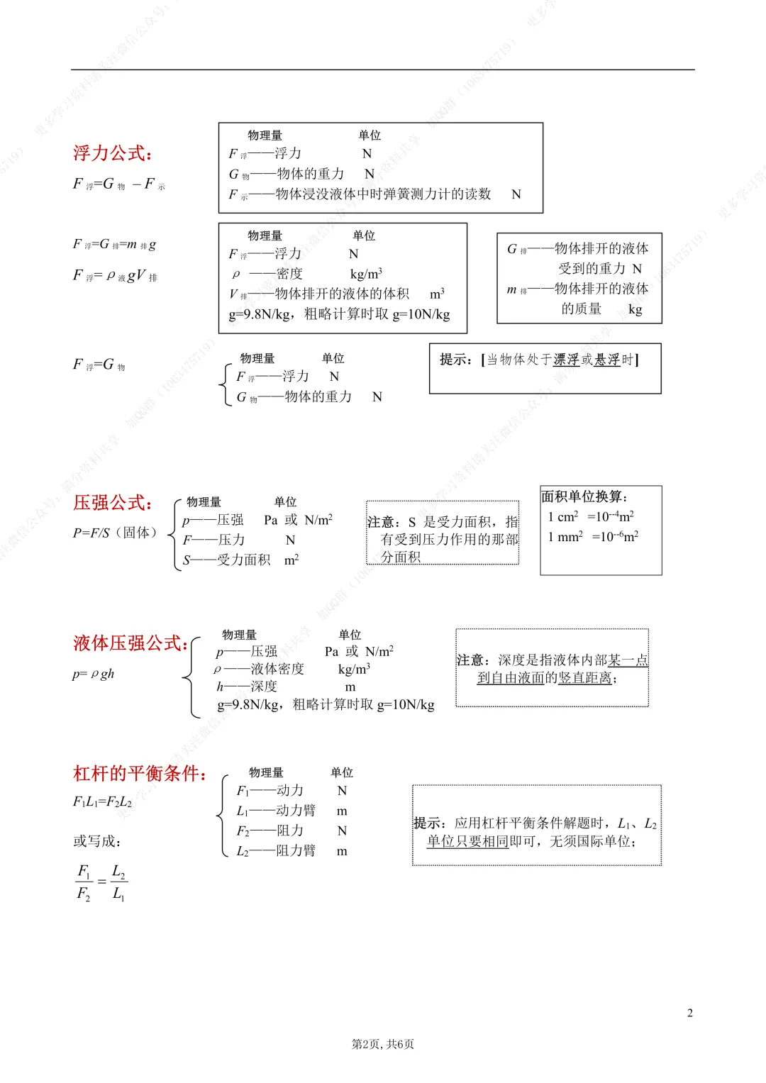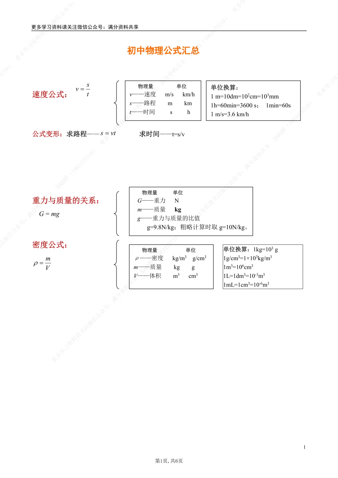 101.【初中物理】初中物理全部公式、定理、方法等梳理,电子版可打印