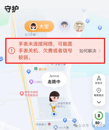 智能关怀提示:手表当前未连接网络/定位超时