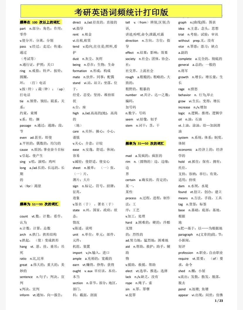 27考研英语词频统计(️可打印版️).PDF