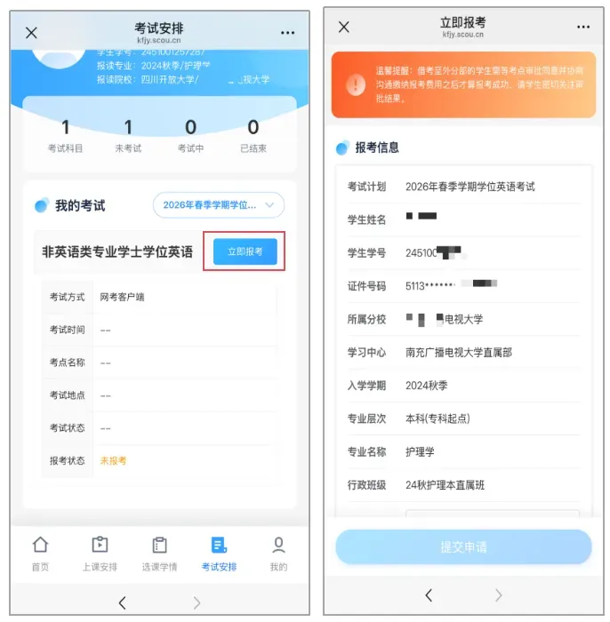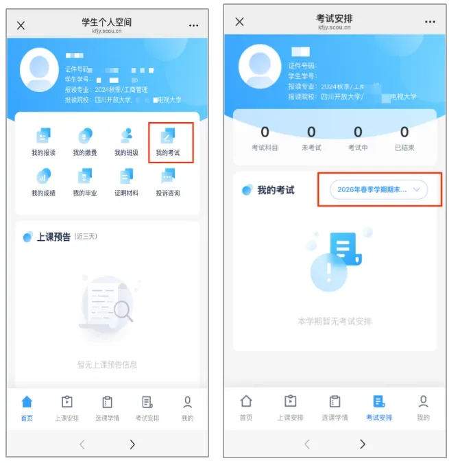 1. 进入“首页”—“我的考试”,切换到本期考试计划。