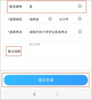 (2)点击提交申请后,省校管理员将与对应考点协调沟通借考事宜。