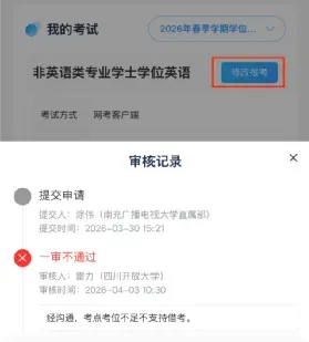 ②若一审不通过,则考点不同意借考,考生需重新选择报考考点。