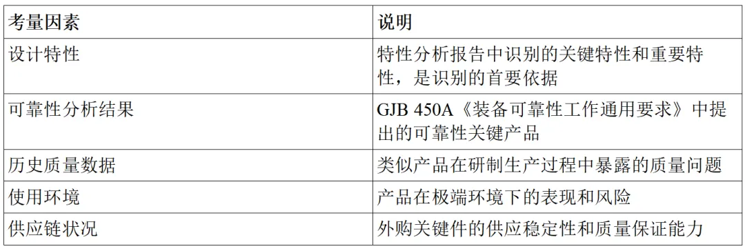 关键件的识别不是简单的“对号入座”,还应综合考虑以下因素: