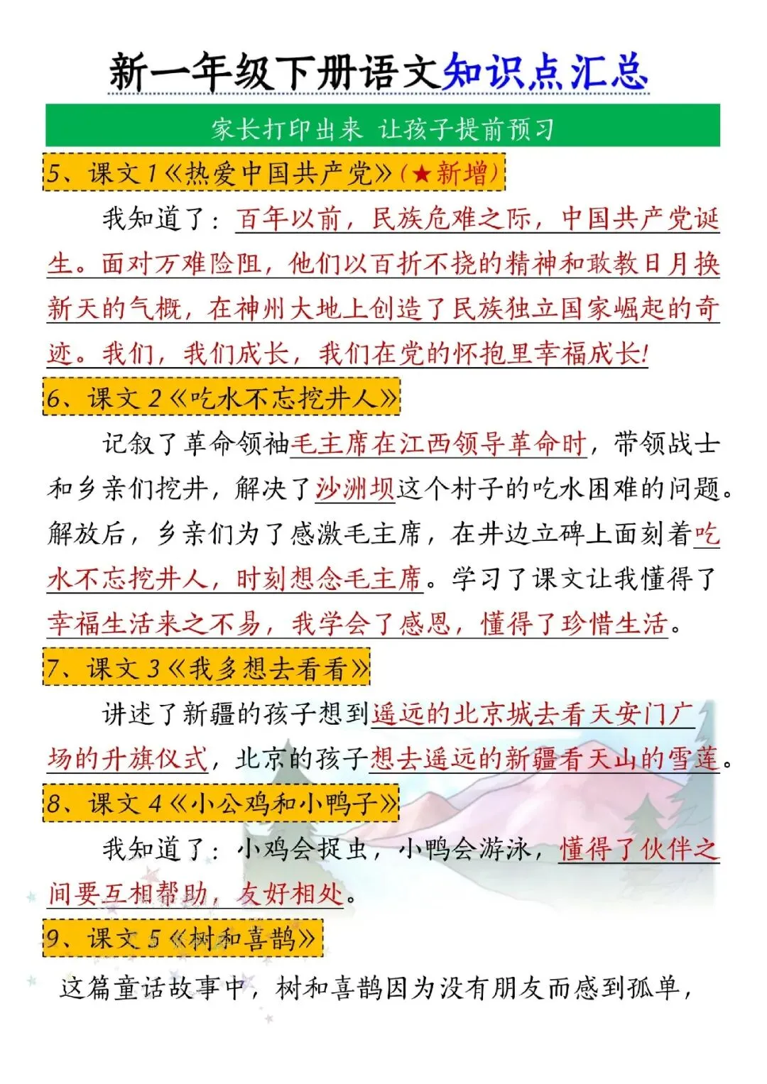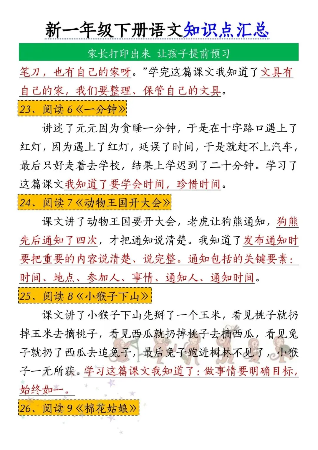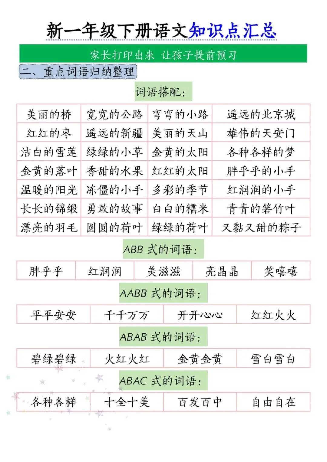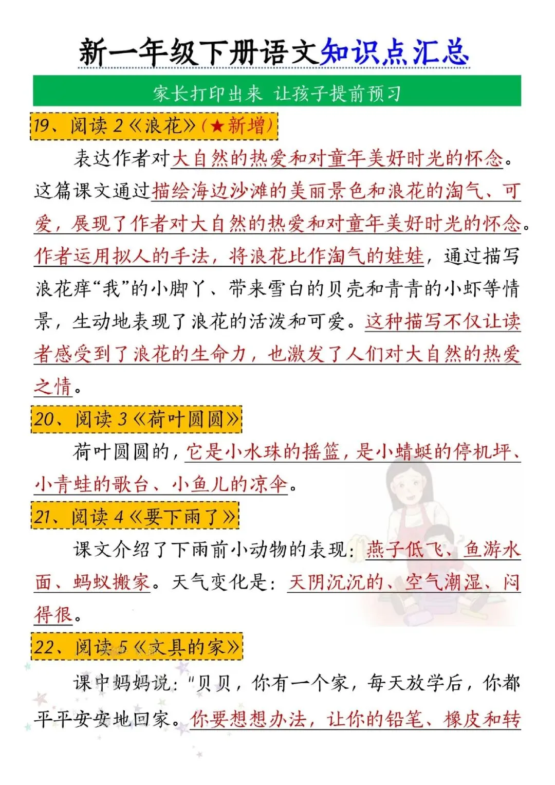 一年级下册语文知识点汇总,重点归纳总结可打印