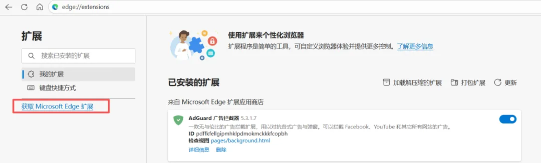 点击 获取 Microsoft Edge扩展 。