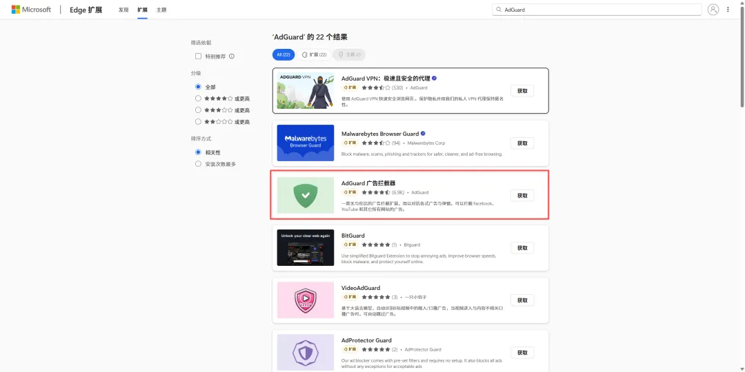 3. 搜索AdGuard,点击获取