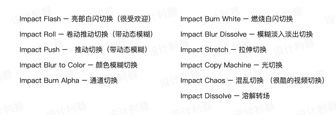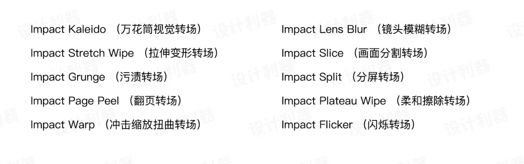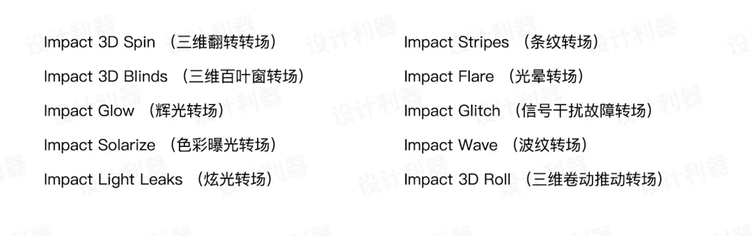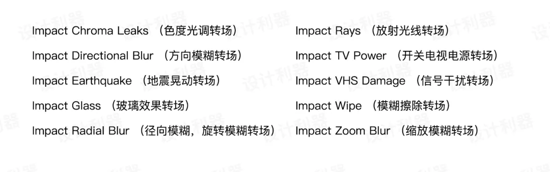 第一套:FilmImpact Transition Pack 1 共11种效果: