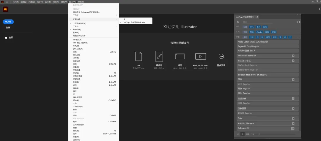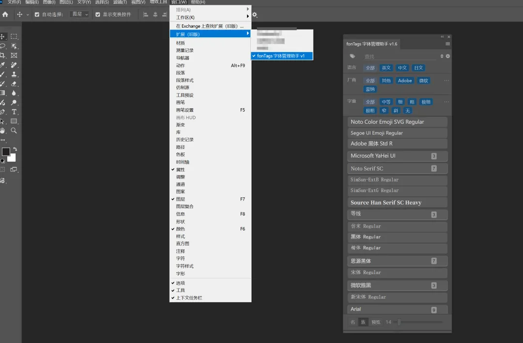 fonTags 1.6 是一款字体管理扩展插件。支持 PS/AI/ID CC 2017 及以上版本- 不同电脑的字体列表需要重新扫描。