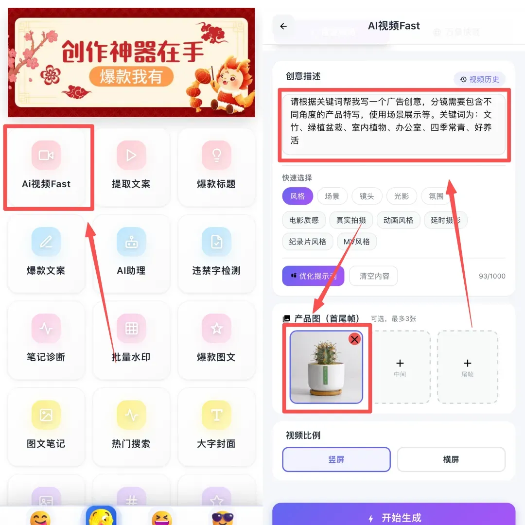 不用专业摄影,不用请模特,几张随手拍的图,几分钟就完成一套详情图。