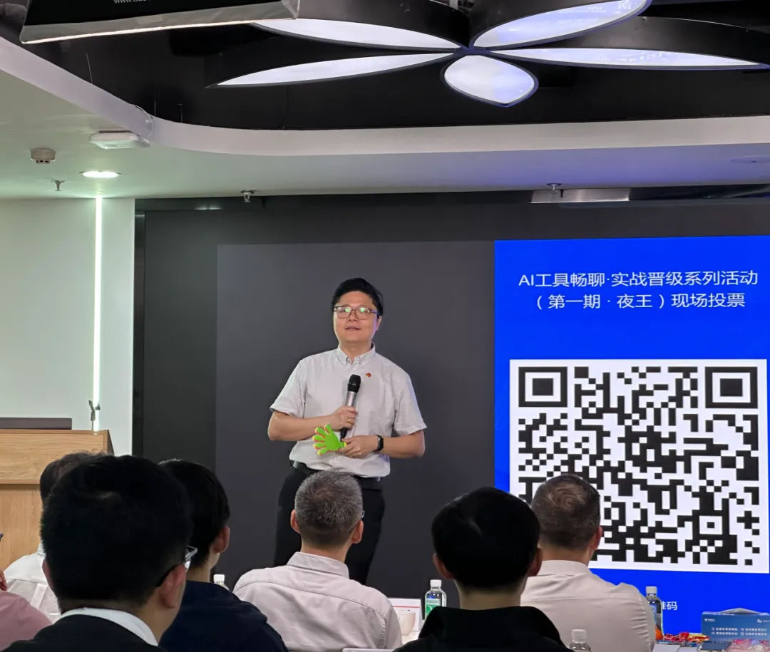 随后,“夜王”实战晋级赛正式拉开帷幕。陈庆端、刘樱桥、张钦烁、萧冠维、赵浩钿5位青年员工,结合自身工作实践,上台开展AI工具实战分享与现场演示。各位选手紧扣工作痛点,分享AI工具实用技巧与落地案例,生动诠释AI为工作减负增效的核心价值。陈庆端分享公司AI智库应用技巧,助力办公与业务效率提升;刘樱桥聚焦AI在音乐创作、信息收集、小游戏等生活领域的实战应用;张钦烁传授优化AI工具适配性、提升工作效率的方法;萧冠维解析新一代AI智能体核心逻辑及实用应用场景;赵浩钿分享AI在财务工作与日常生活中的提效实践,兼顾工作提质与生活便捷。