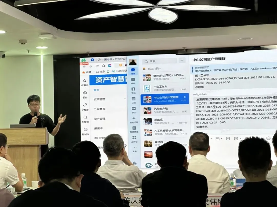 为深入践行中国电信“云改数转智惠”战略,精准对接青年员工成长需求,加速企业数字化转型落地,3月31日晚,中国电信中山分公司团委于市公司AI+展厅,举办第一期“夜王”AI工具应用畅聊分享暨实战晋级活动。活动聚焦近3年入职新大学生群体,以“告别无效加班、掌控工作节奏”为核心,通过AI技术助力青年员工提质提效,推动工作与生活平衡发展。分公司副总经理麦显森,IT业支总经理王伟、副总经理梁干超,团委书记张思远、南部分公司副总经理陈志平、销售部副总经理何健慧及团委委员、团员青年30多人参加了本次活动。
