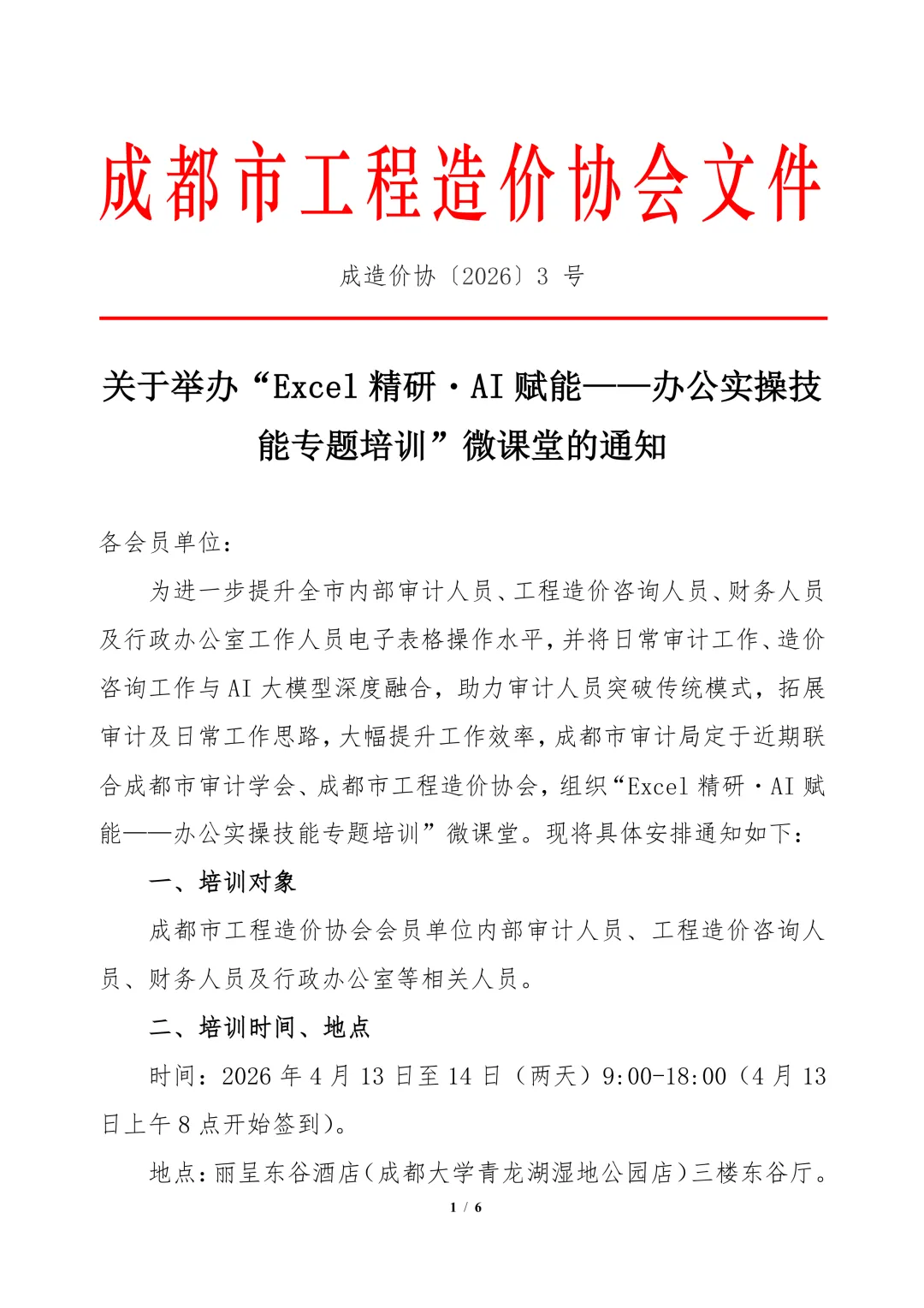 关于举办“Excel精研・AI赋能——办公实操技能专题培训”微课堂的通知