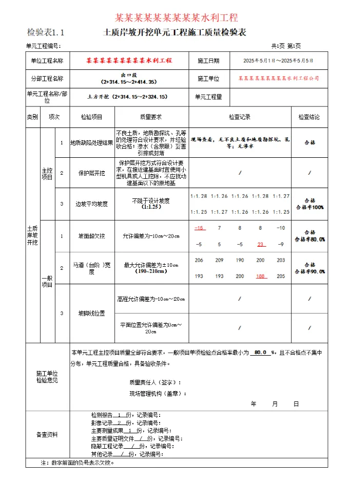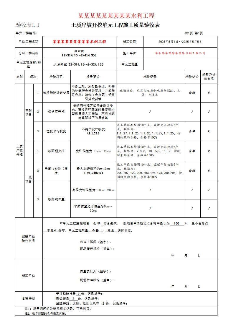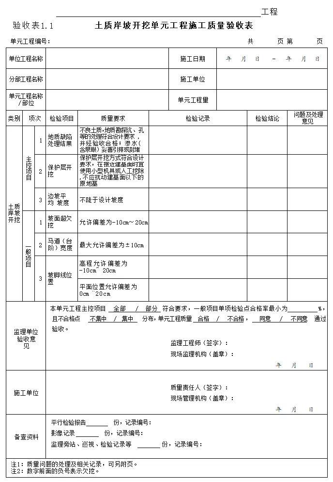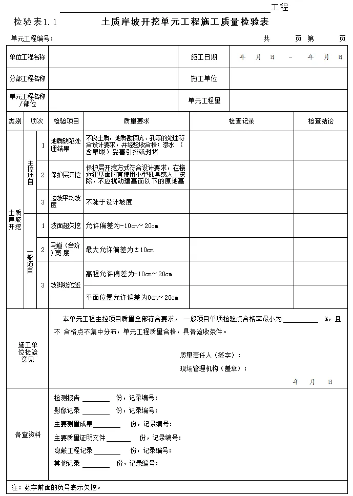 检验表及验收表-土质岸坡开挖