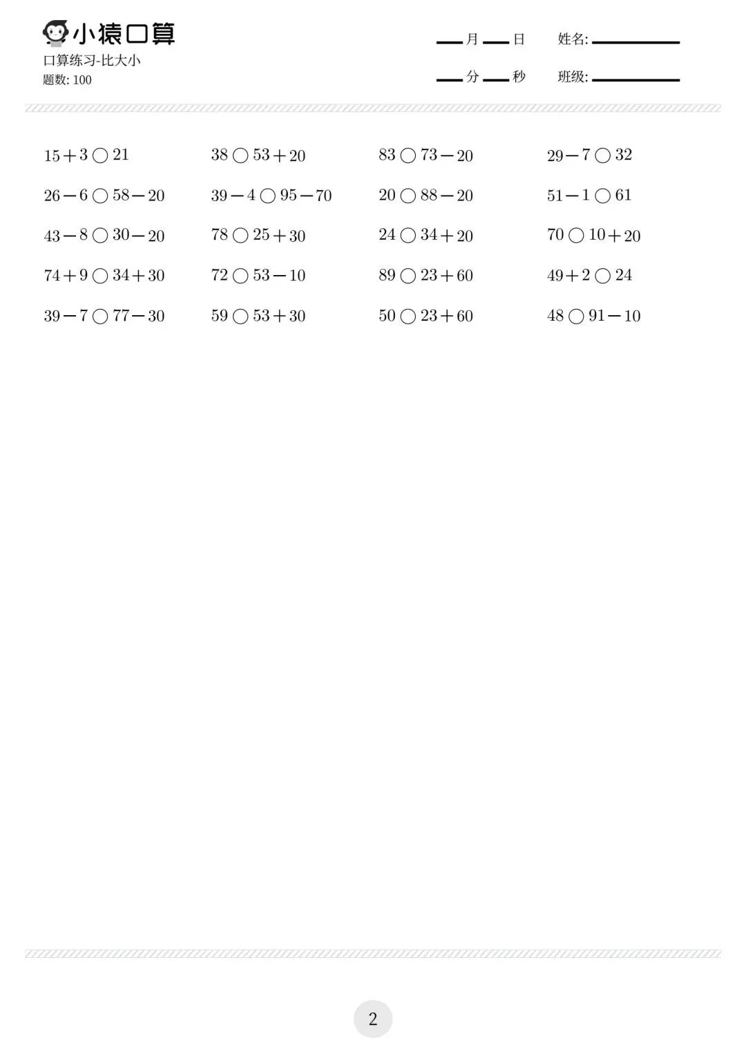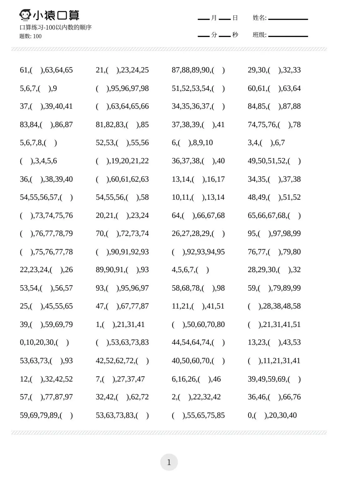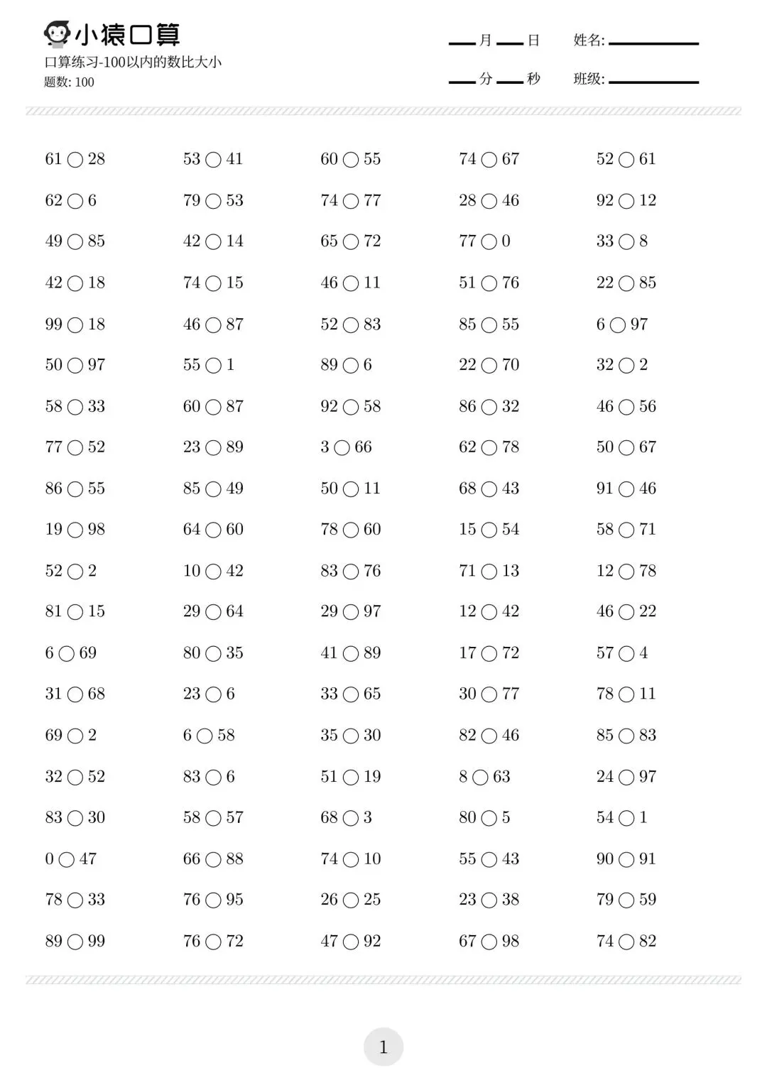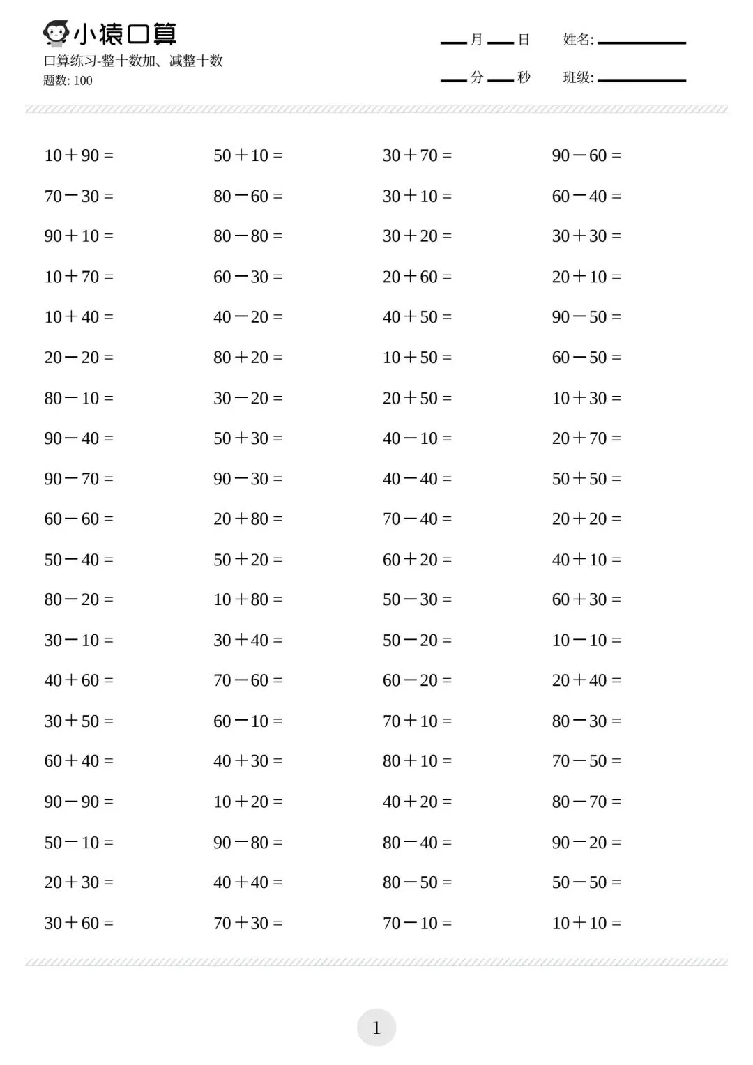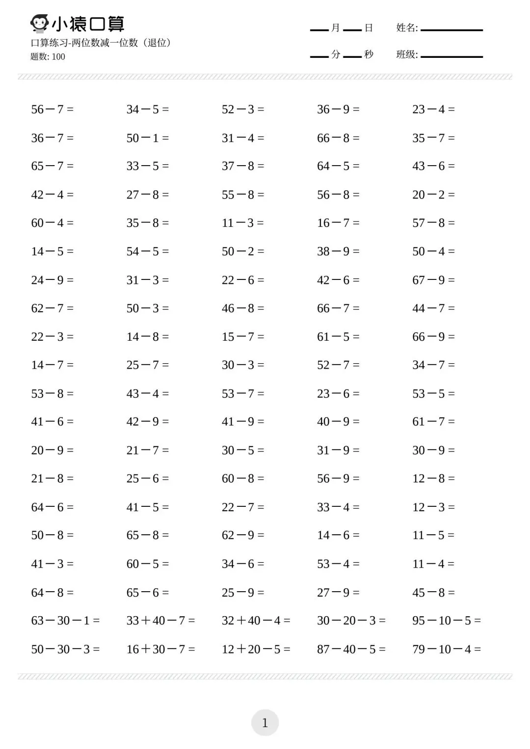 一年级小猿口算练习题,电子版可下载免费