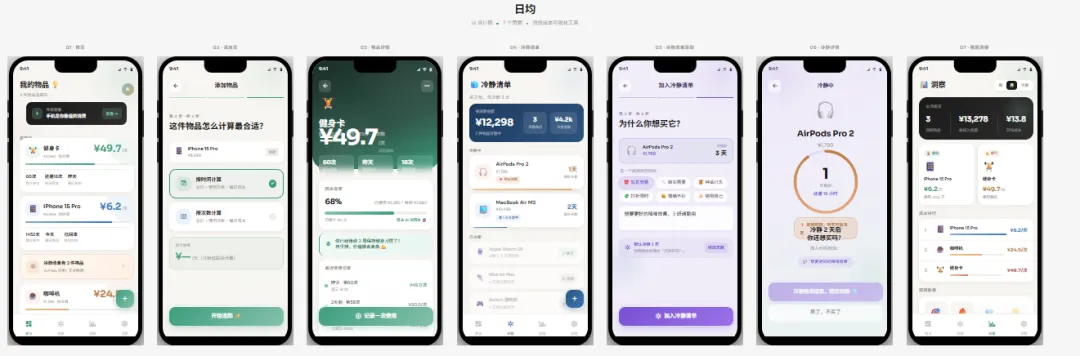 我的做法是让AI直接生成HTML页面当原型图。每个页面单独一个HTML文件,打开浏览器就能看效果。首页、添加页、详情页、冷静清单、洞察页——所有页面都用一个prompt完成。