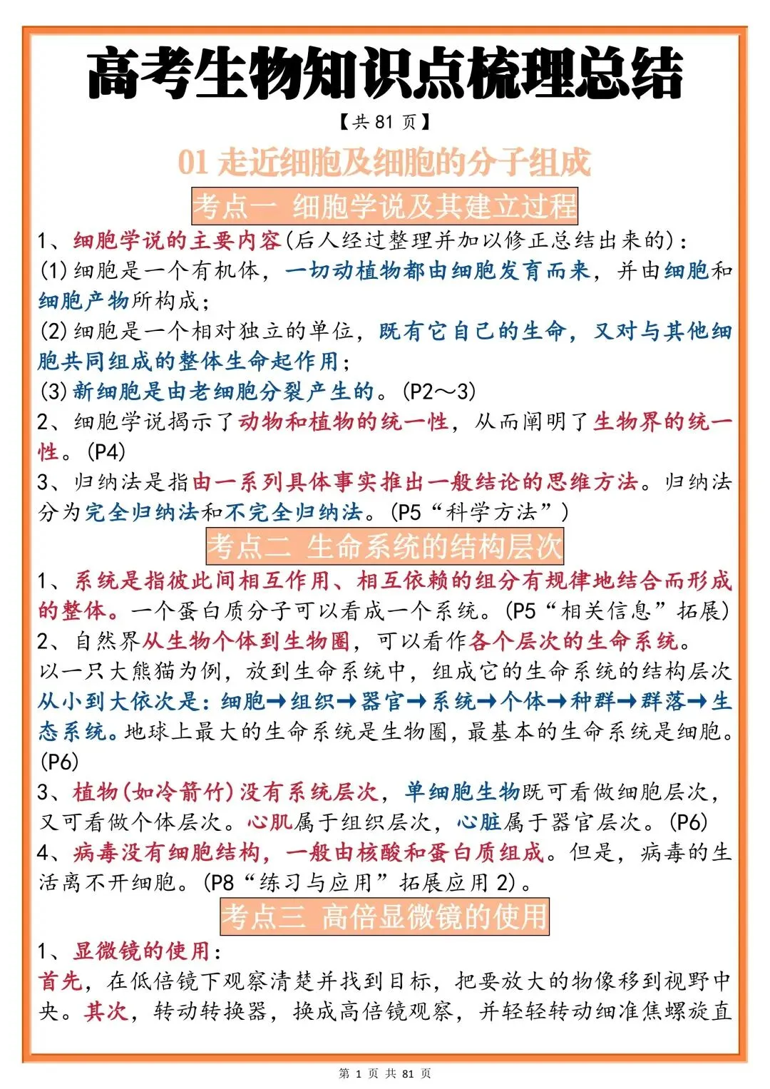 新高考生物提分必备!这份核心知识点梳理总结,聚焦2026新高考命题趋势,专为考生量身打造。