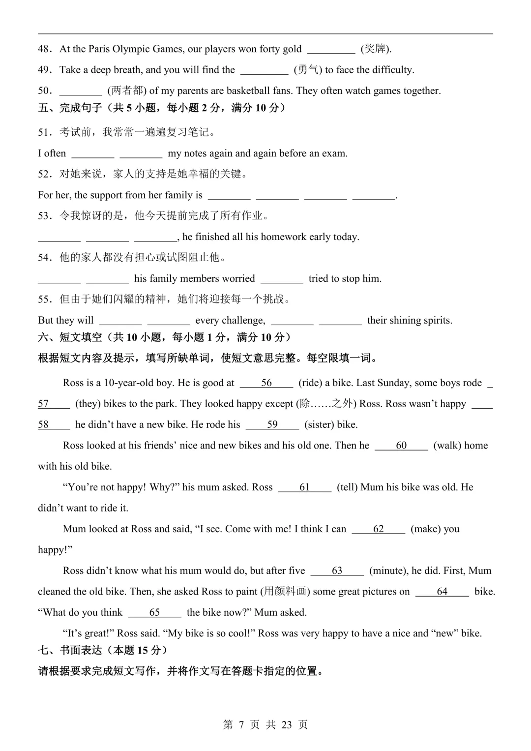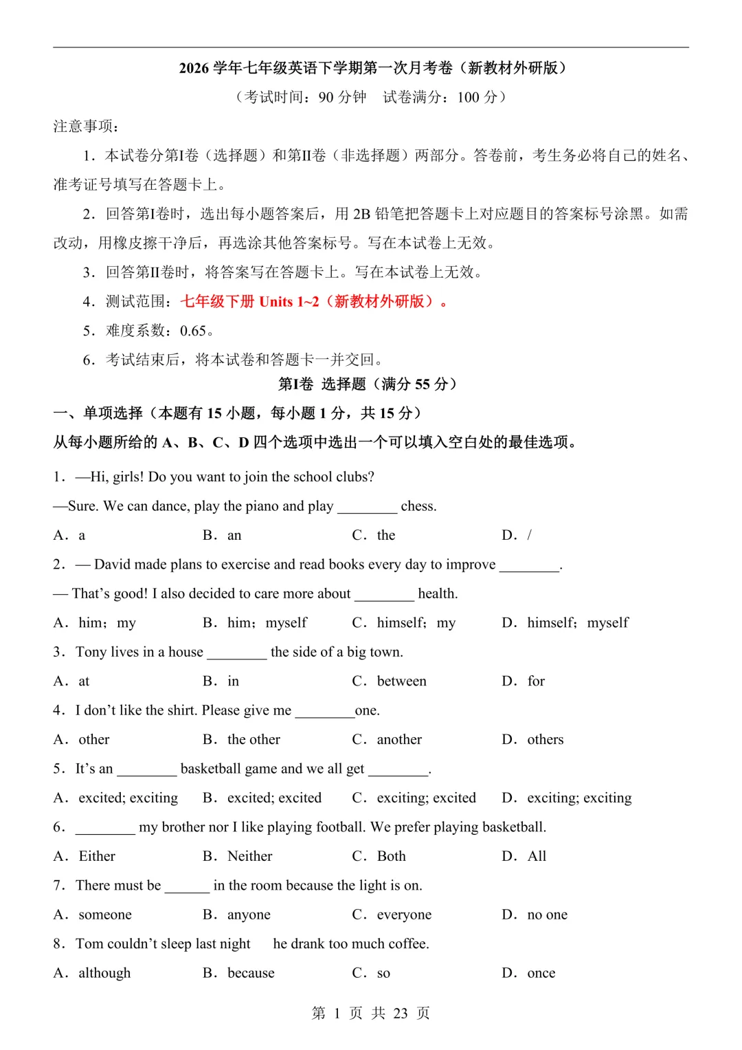 七下英语第 1 次月考卷(外研版)可打印! 测试范围为七下 Units1-2,包含单项选择、完形填空、阅读理解、单词拼写、短文填空、书面表达全题型,聚焦运动、校园生活、个人成长等核心话题,附完整答案 + 解析 + 写作范文,适配月考检测与同步复习,电子版直接打印!#初中英语 #七下英语 #外研版 #第一次月考 #含答案 温馨提示:文末有完整电子版领取方式 领取完整电子版: 1. 点一点右下“👍”和“❤️” 2. 点击下方名片→后台发消息:777 -END-