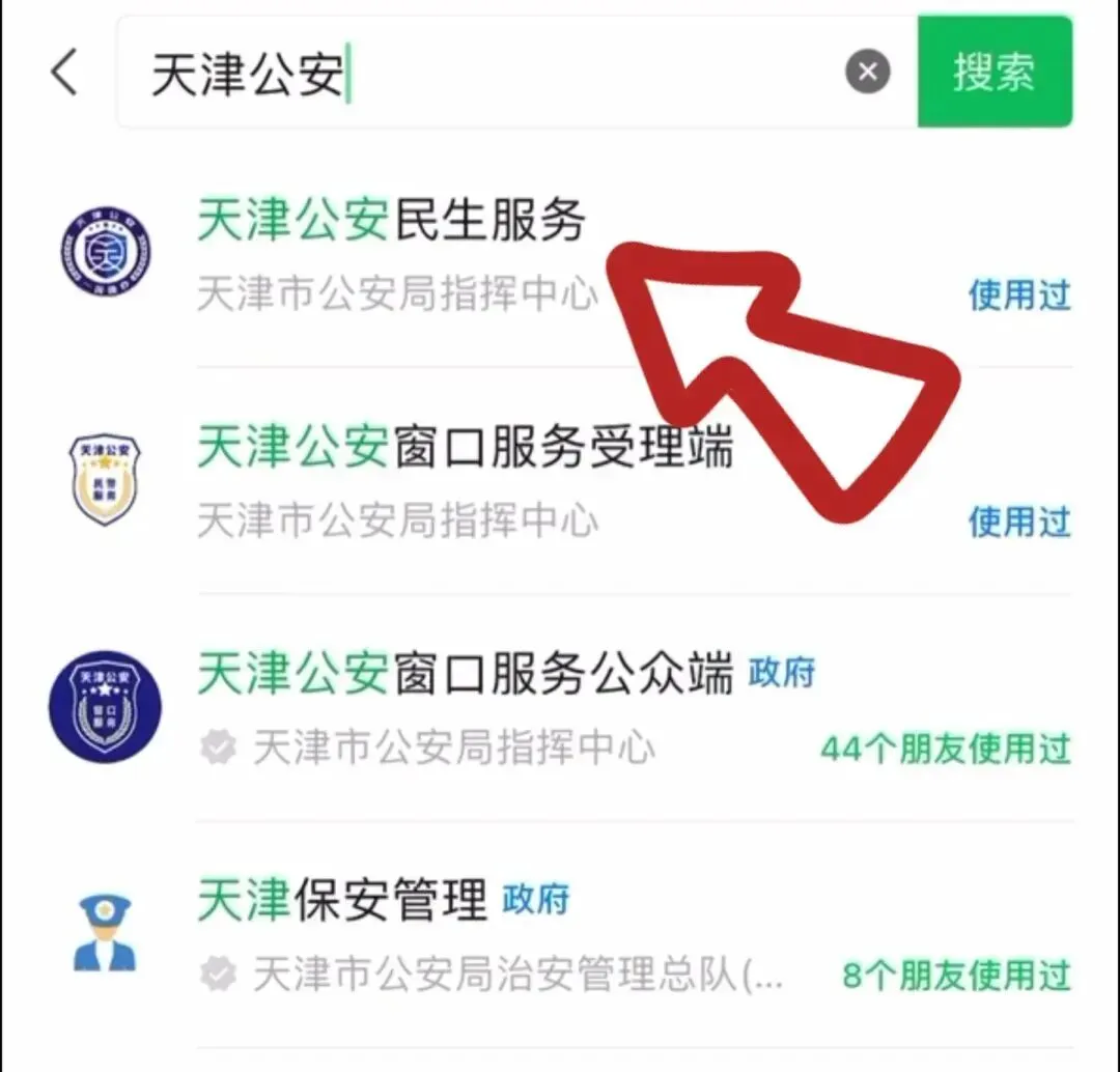 微信搜索“天津公安民生服务平台”,点击小程序进入办理(或者直接扫码进入办理界面)